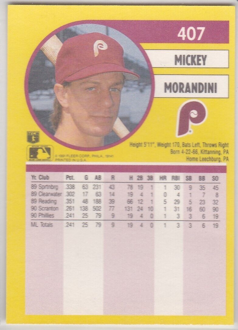 M) 1991 Fleer Baseball Trading Card - Mickey Morandini #407