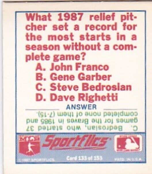 1987 Sportflics #133 Mini Baseball Trivia and similar items