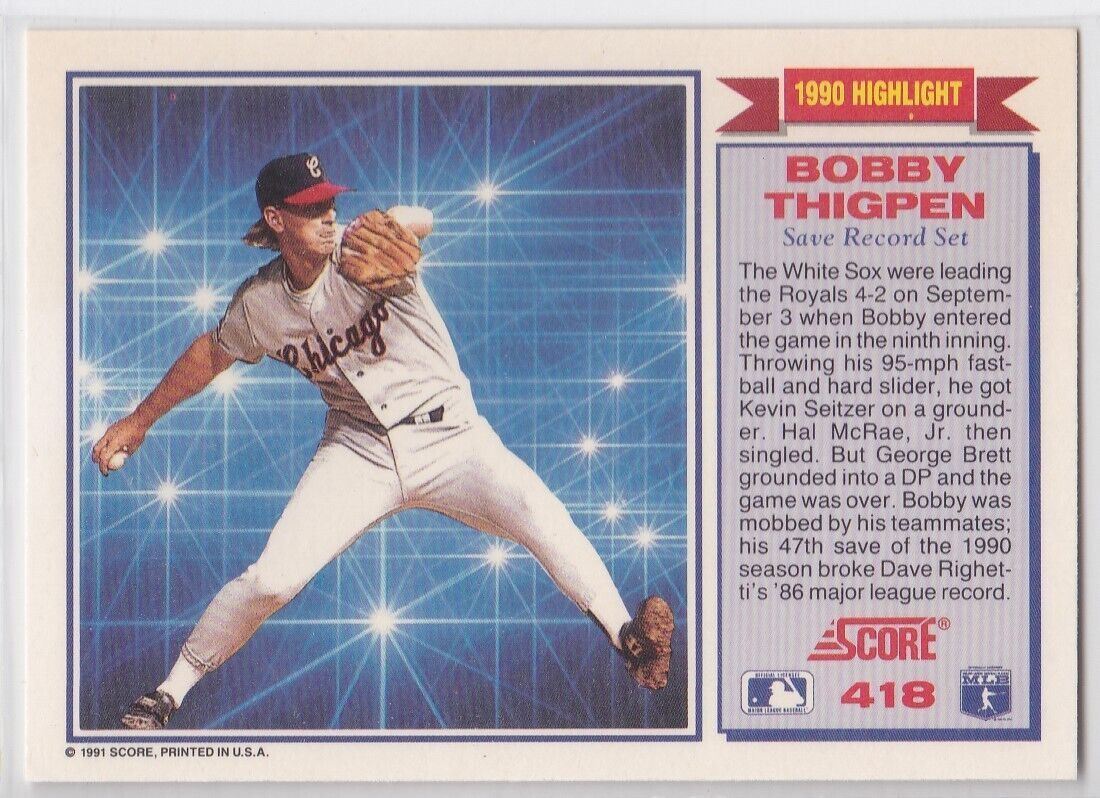 M) 1991 Score Baseball Trading Card - Bobby Thigpen #418