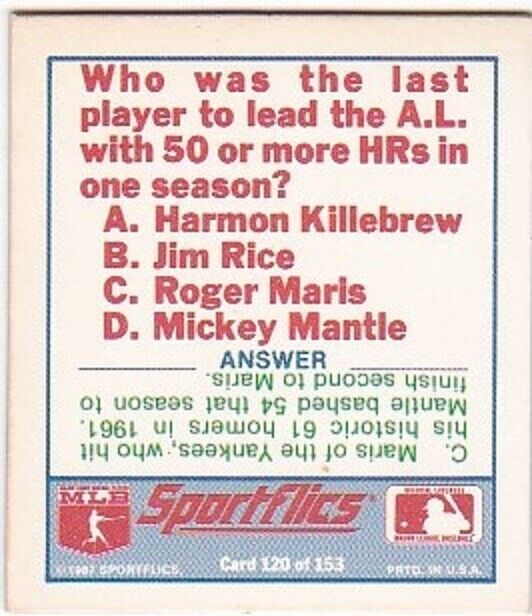 1987 Sportflics #120 Mini Baseball Trivia and similar items