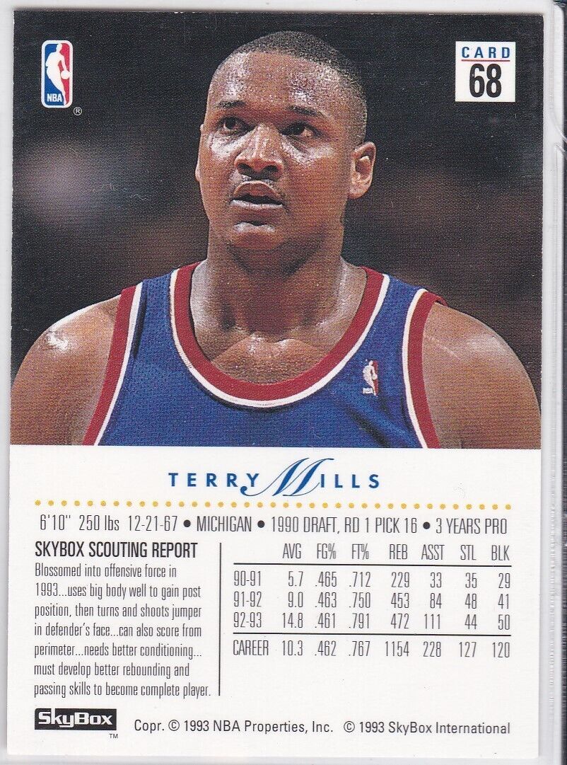 M) 1993-94 Skybox Basketball Trading Card - Terry Mills #68