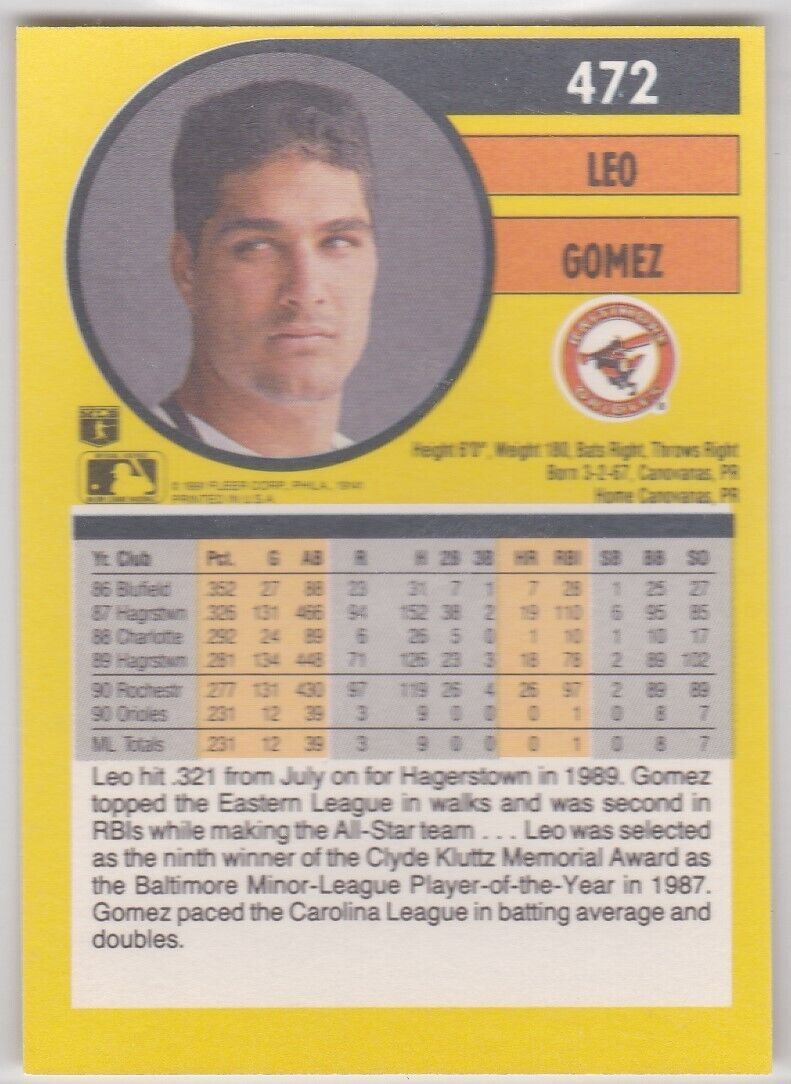 M) 1991 Fleer Baseball Trading Card - Leo Gomez #472