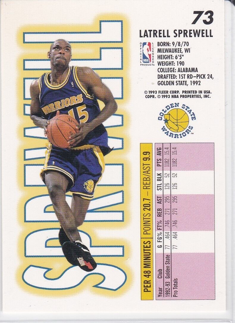 M) 1993-94 Fleer NBA Basketball Trading Card - Latrell Sprewell #73