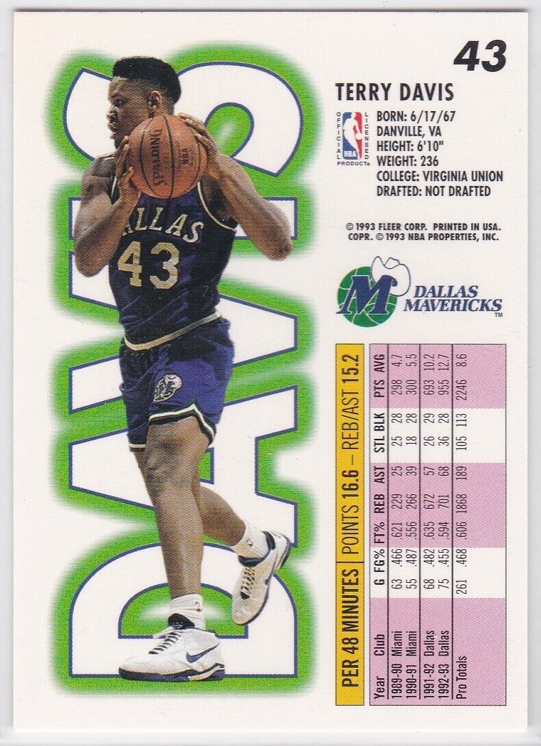 M) 1993-94 Fleer NBA Basketball Trading Card - Terry Davis #43