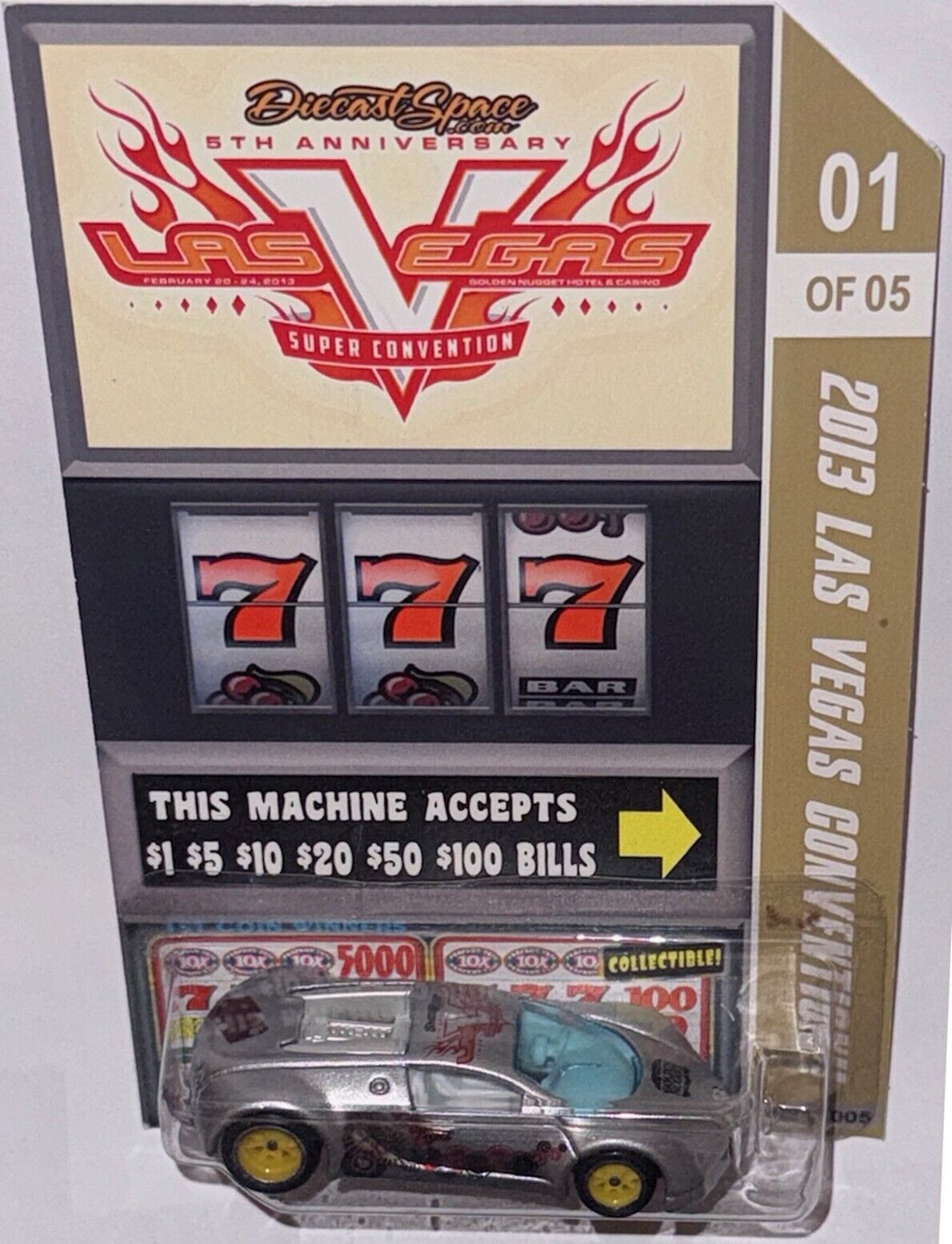 Silver Bugatti Veyron Custom Hot Wheels 2013 Vegas Super Toy Convention w/RR