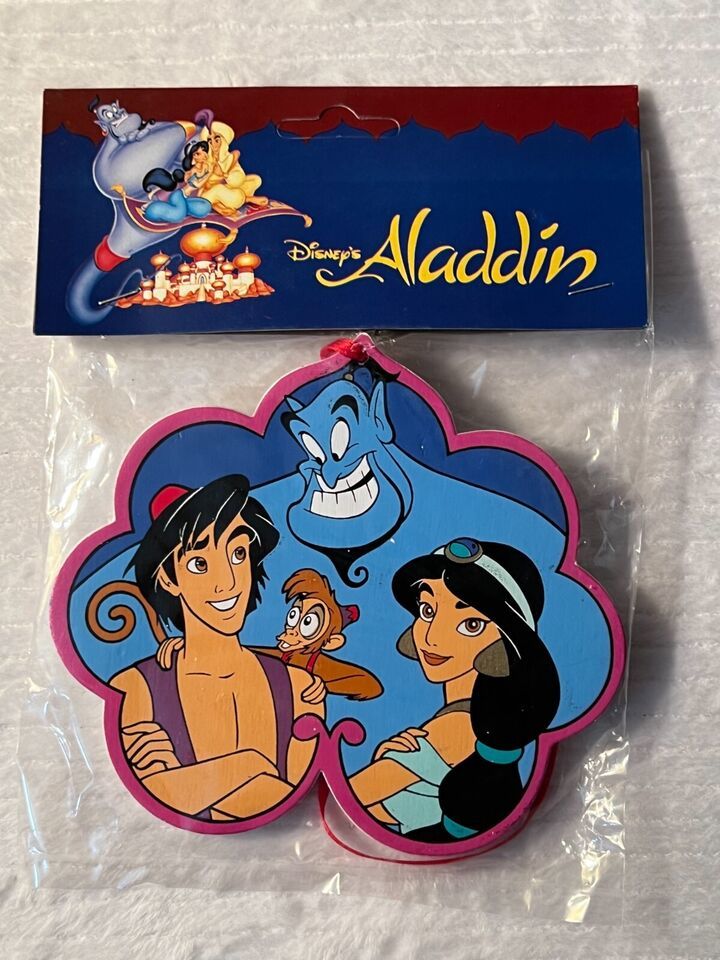 Add some Disney magic to your Christmas decor with this vintage wooden ornament featuring characters from Aladdin. Crafted in Taiwan by Kurt Adler, this collectible piece showcases the beloved Genie, Jasmine, and Abu. The ornament was made in 1994 and is perfect for Disney fans and collectors alike. Made of high-quality wood, this ornament is sure to last for years to come. Embrace the holiday spirit with this beautiful piece and make your Christmas tree a little more special this year.