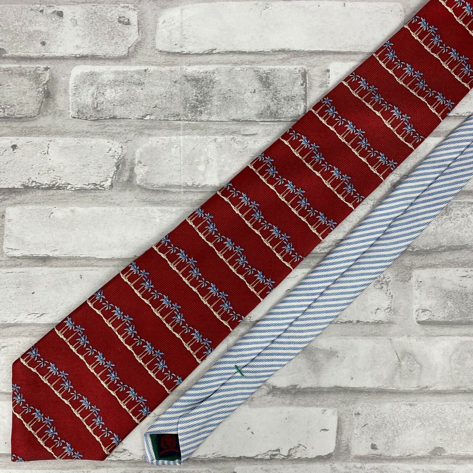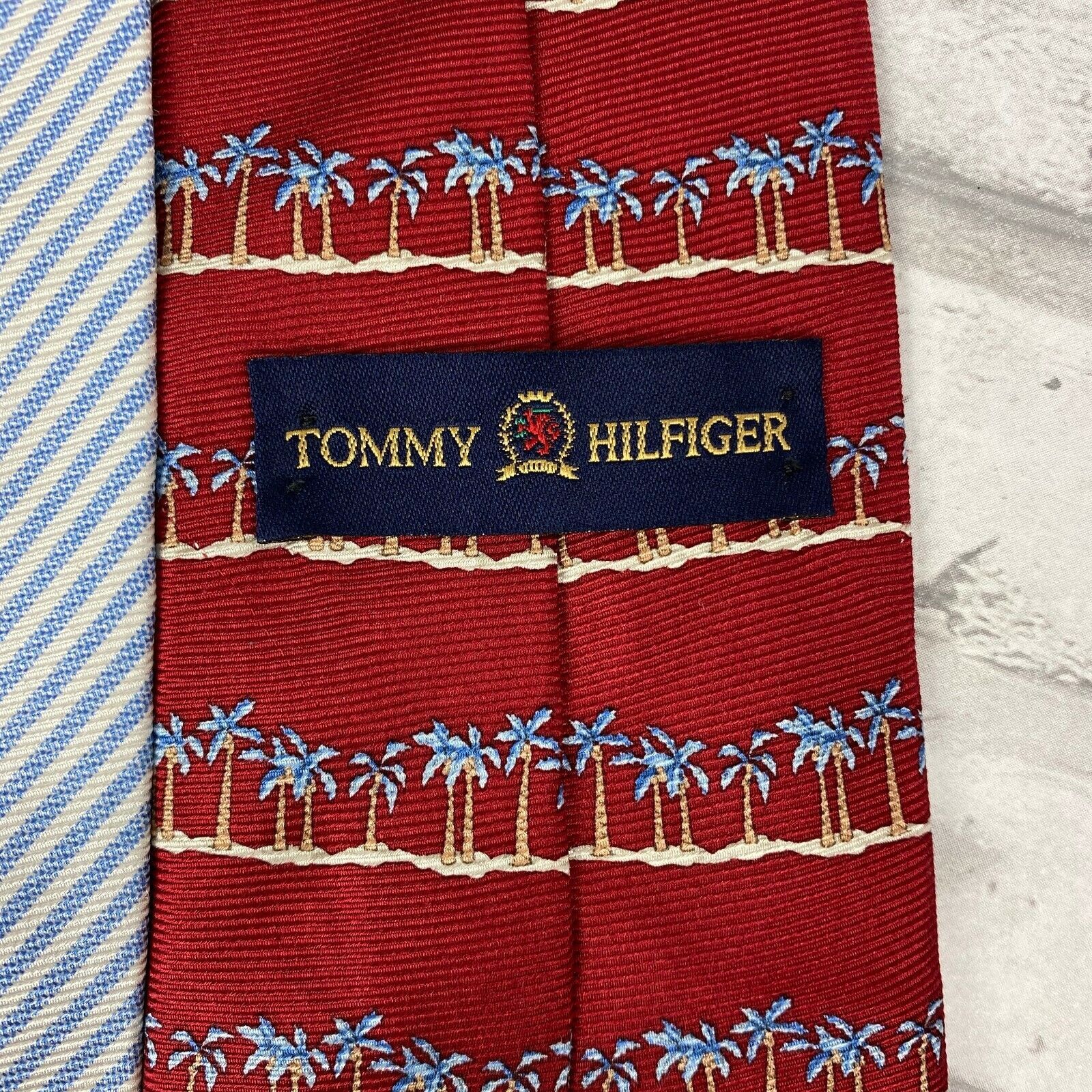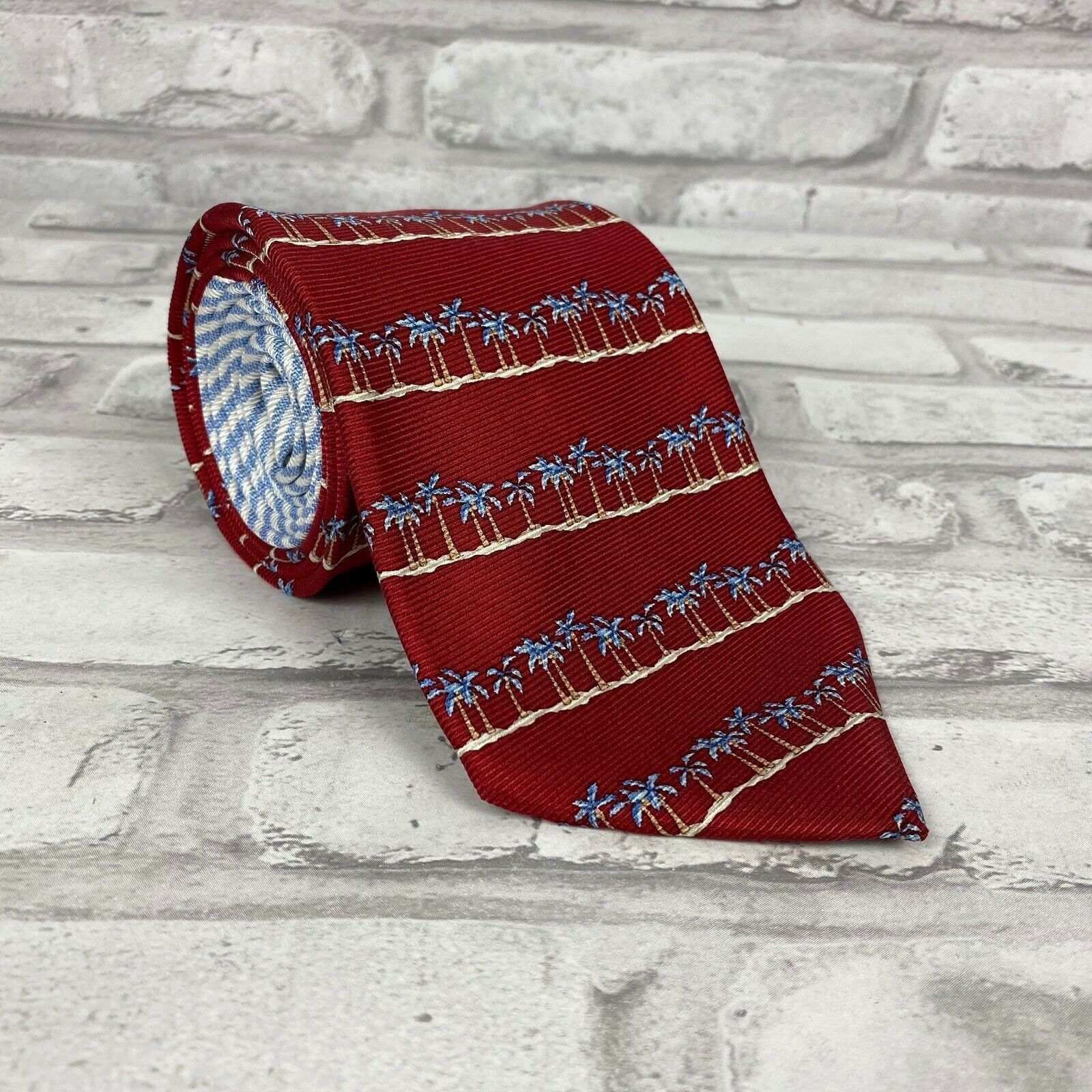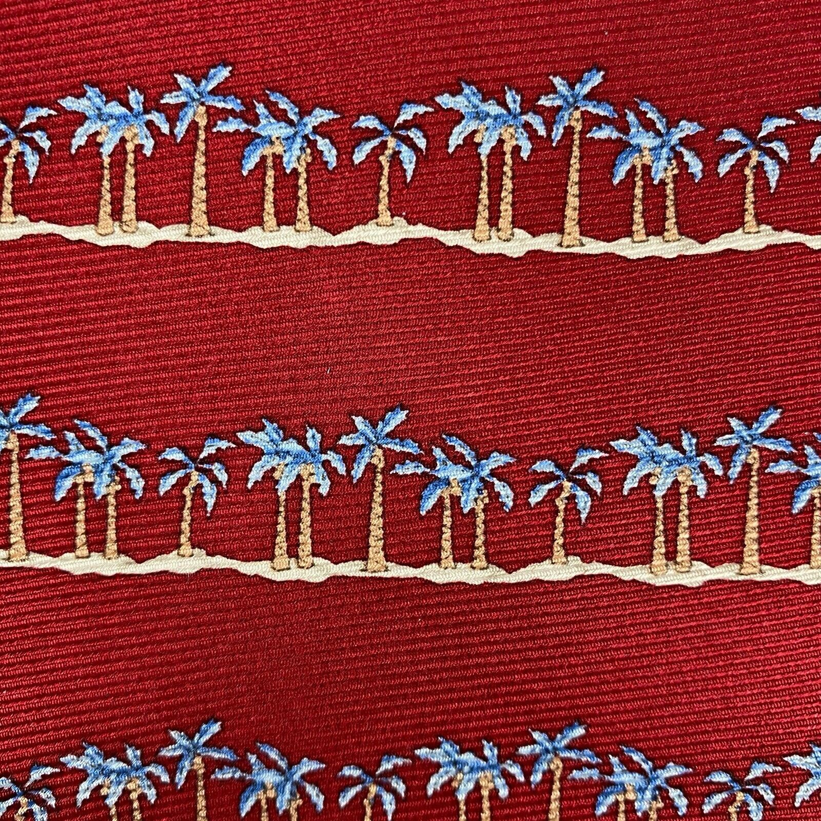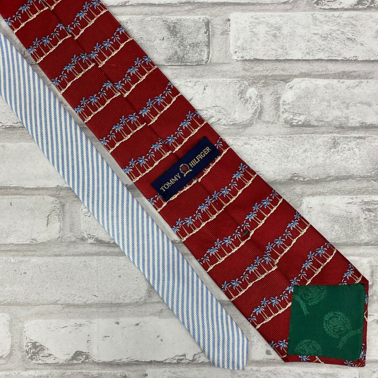 Tommy Hilfiger Tie Red Blue 100% Silk Neck Palm Trees Hawaii Beach Cruise Summer