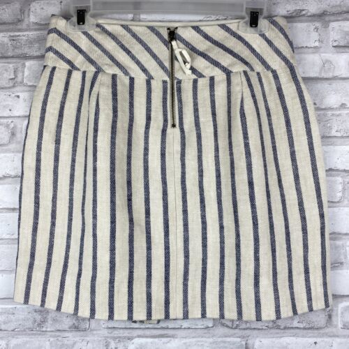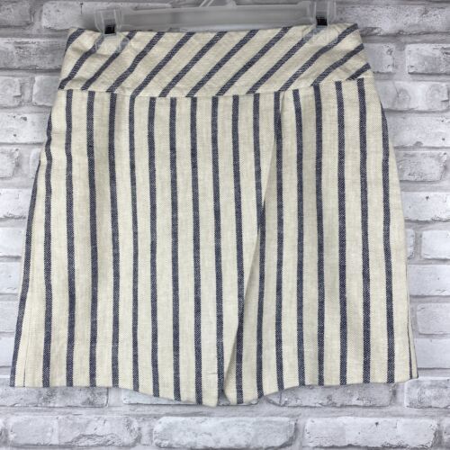 J Crew Skirt Size 2 Tan Navy Blue Striped Linen Straight Above Knee Faux Wrap