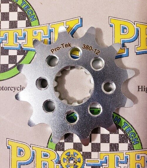 Pro-tek front sprockets are also completely CNC machined to exact tolerances from 4140 nickel-chromoly steel resulting in a quality product. None of the Pro-tek front sprockets are gear hobbed, but are lightened with drilled holes to save on rotating mass. Every lb of rotating mass e, 13Tquates to a 4 lb weight reduction. The sprockets are then case hardened to Rc 58-60 and finished with a zinc plating for added durability and protection from corrosion. Made in the USA, normally retail for $29.95. This is for a 520 Pitch front sprocket 12, 13 or 14 tooth.