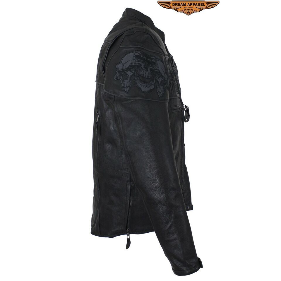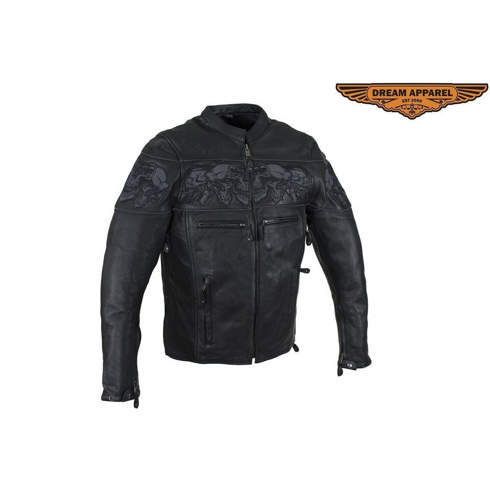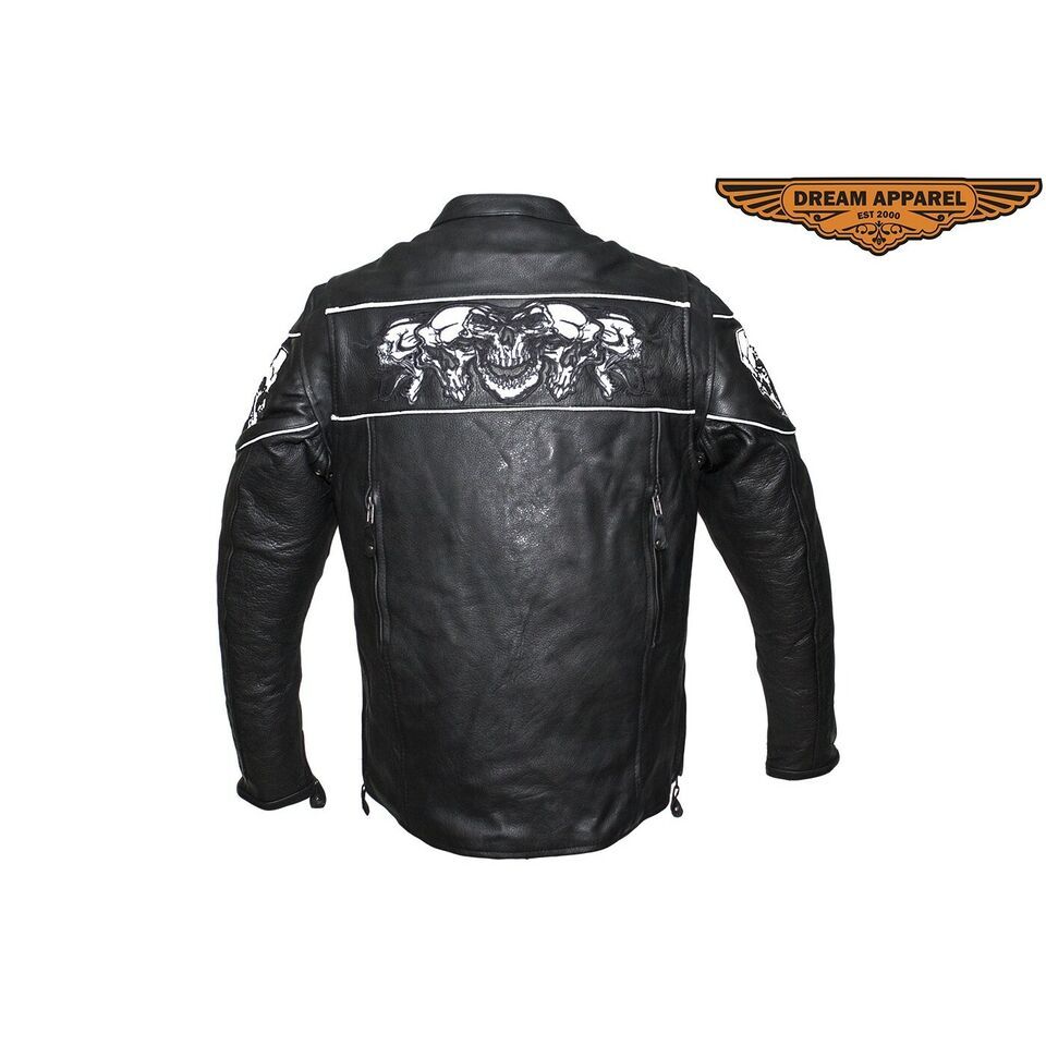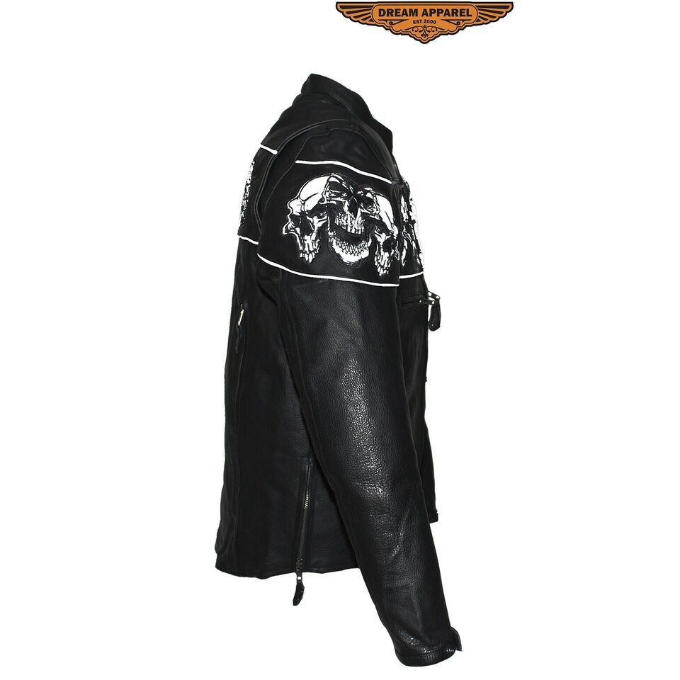 Men's Leather Concealed Carry Racing Reflective Skulls Motorcycle Jacket