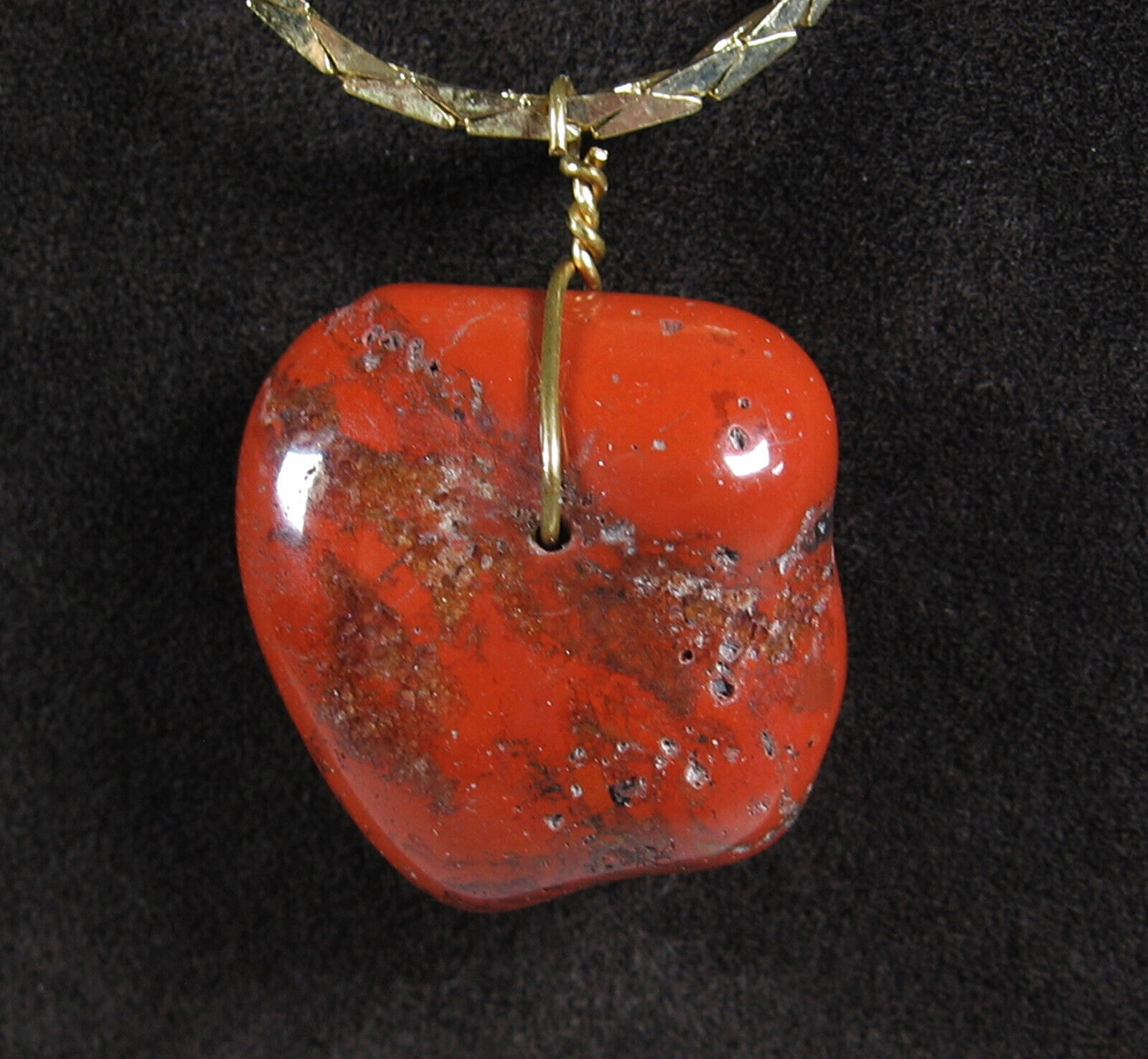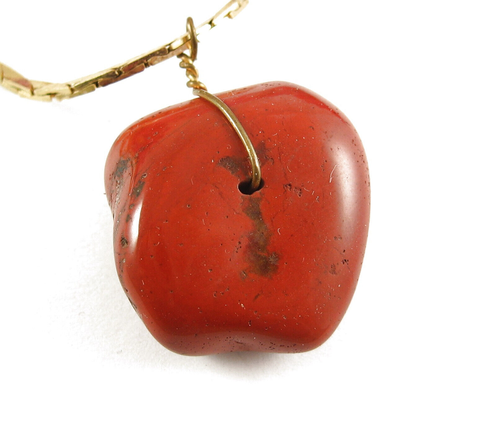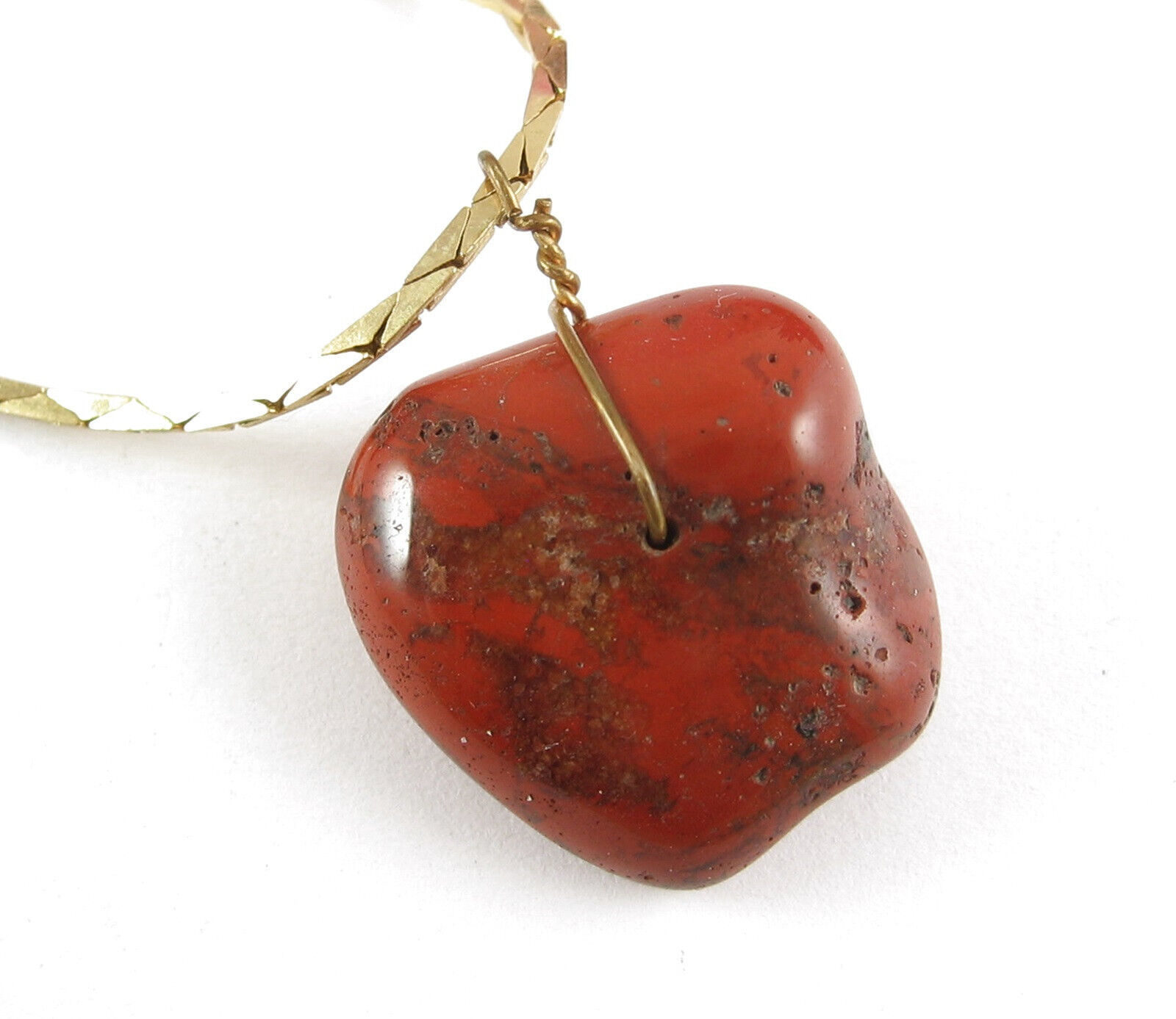 Vintage CARNELION STONE PENDANT Necklace Flat Triangle Link Goldtone Rusty Red