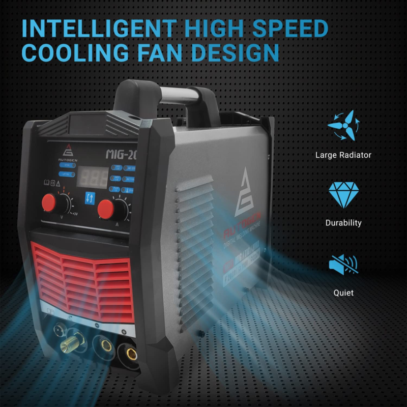 ?IGBT INVERTER?IGBT intelligent inverter technology. IGBT power device with unique control mode improves the reliability of welding machine. The flux core welder works more efficiently, reduces energy loss, and welds better.