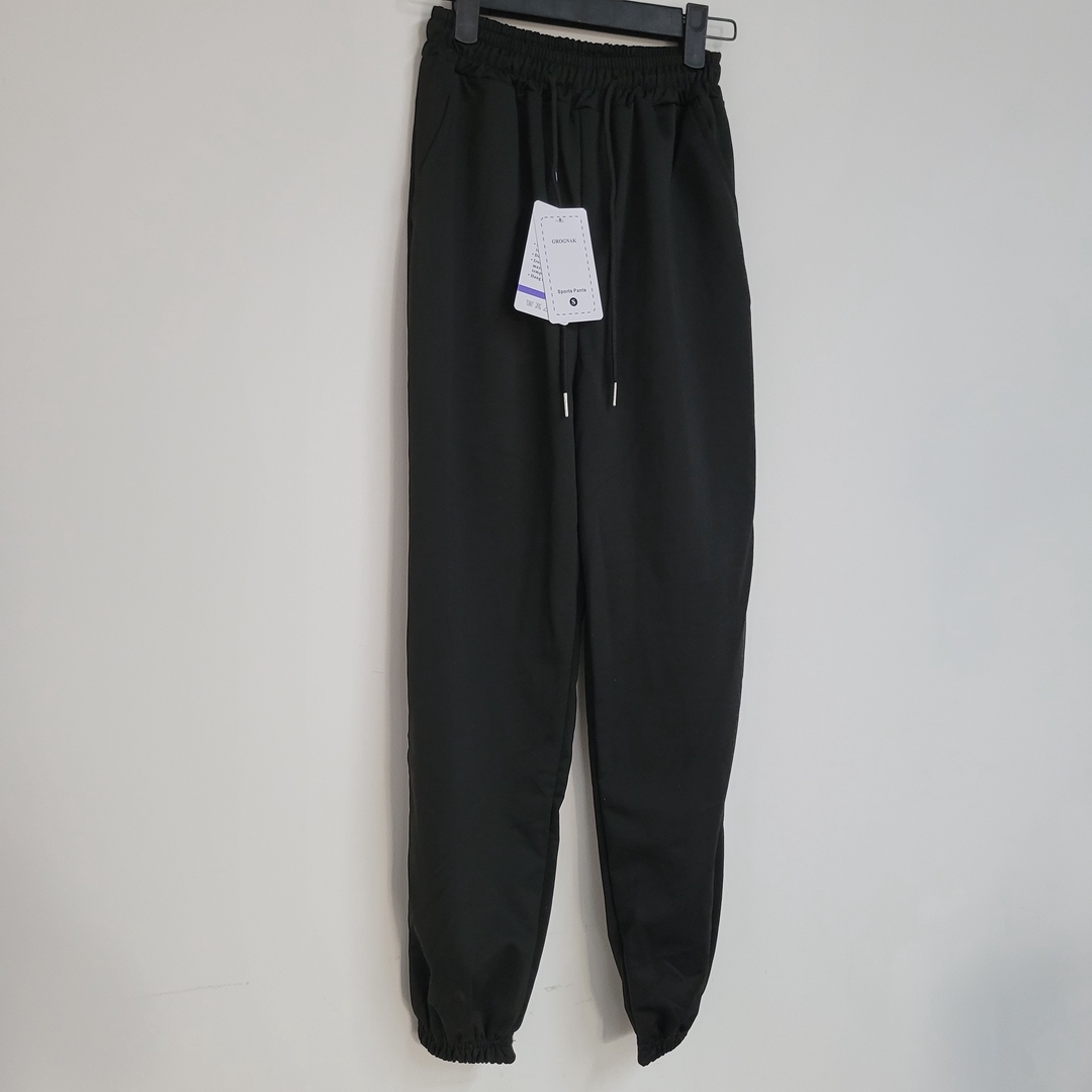 1. **Sleek in Black:** Elevate your athletic wardrobe with our Black Drawstring Sports Pants. The deep black hue adds a touch of sophistication to your sporty ensemble, ensuring you look as good as you feel during your workouts. 2. **Customizable Fit:** Featuring an adjustable drawstring waist, these sports pants allow you to achieve the perfect fit for your body. Enjoy the freedom to customize the waistline according to your comfort and style preferences. 3. **Tapered Leg Design:** The tapered leg silhouette not only provides a modern and stylish look but also offers functionality. The snug fit at the ankles keeps the pants securely in place, allowing you to focus on your workout without distractions. 4. **Breathable Comfort:** Crafted from breathable and moisture-wicking materials, these sports pants keep you cool and comfortable during intense workouts. Stay dry and focused, whether you're hitting the gym, running, or practicing yoga. 5. **Versatile Performance:** From workouts to casual outings, these sports pants seamlessly transition from the gym to the streets. The combination of comfort, style, and functionality makes them an essential addition to your active lifestyle wardrobe.