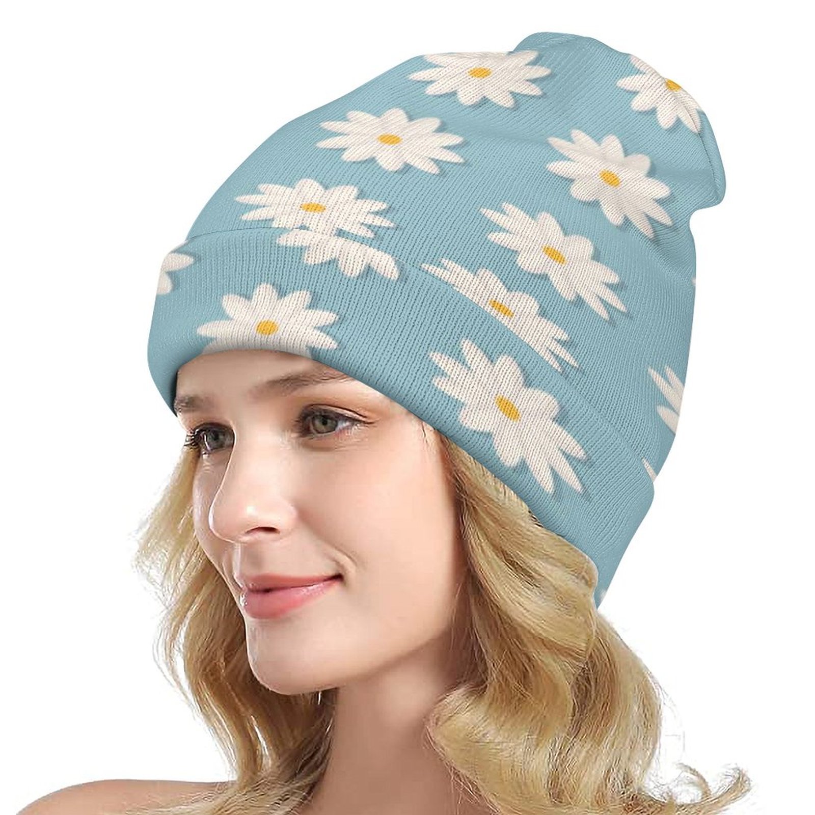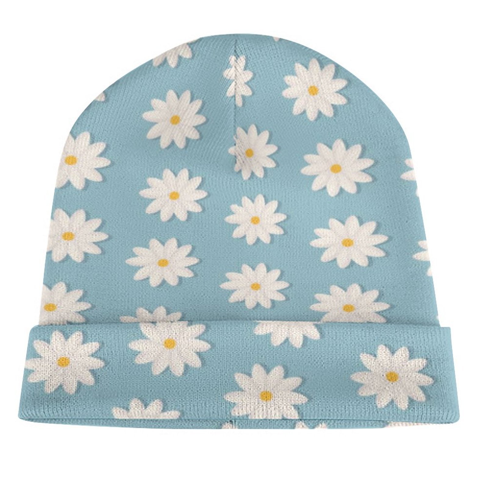 Colorful floral flowers daisy cartoon pizza beanie hats for men women warm winter knitting cap spring autumn.