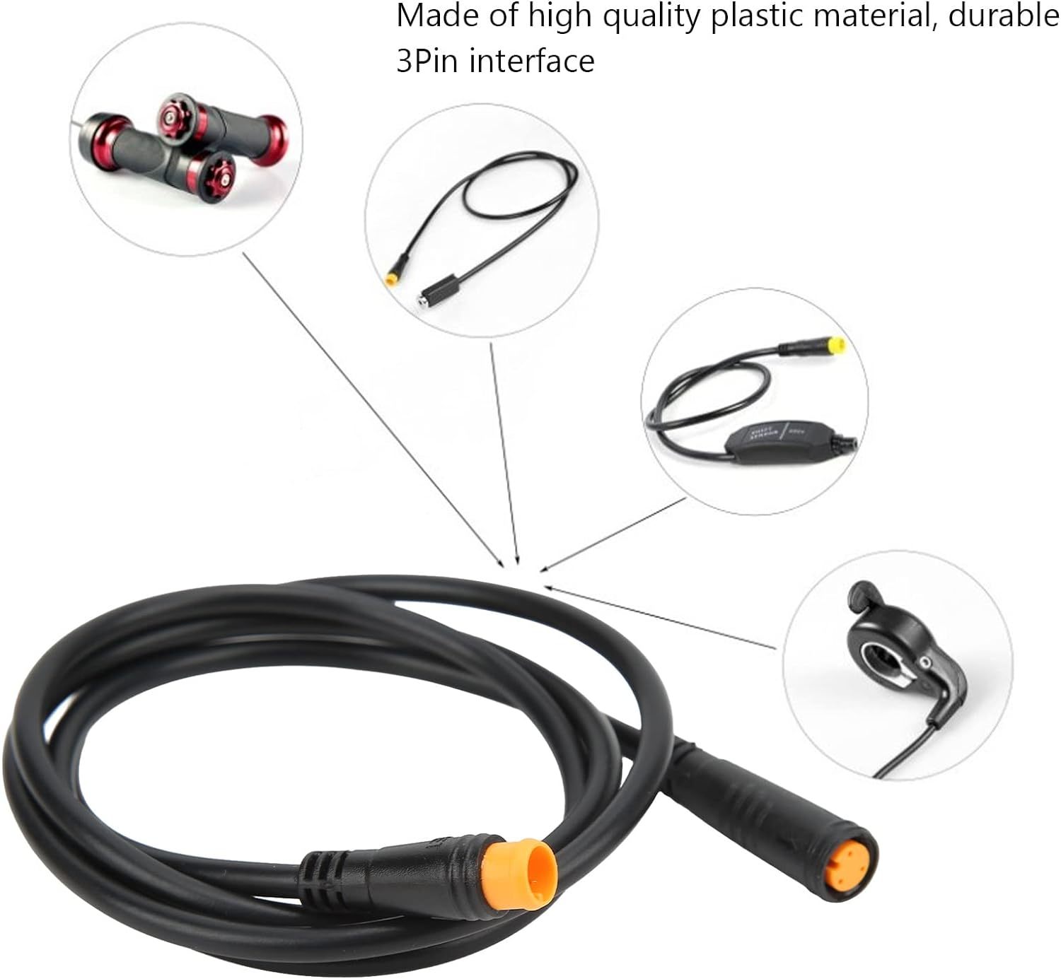 Premium Materials: The electric bike thumb throttle cable is made of high quality plastic material, which is durable, wear resistant and not easily damaged. Excellent Accessory: The electric bike thumb throttle extension cable with 3 Pin interface, which is an excellent electric bicycle modification accessories. Sophisticated Technology: Manufactured with sophisticated production tchnology, the thumb throttle extension cable is highly waterproof and has a long service life. Suitable Model: With fine workmanship, this electric bike thumb throttle extension cable is suitable for mid drive conversion kit. Used for: This electric bike thumb throttle extension cable is 87cm long and can be used to extend the sensor, throttle, brake lever.
