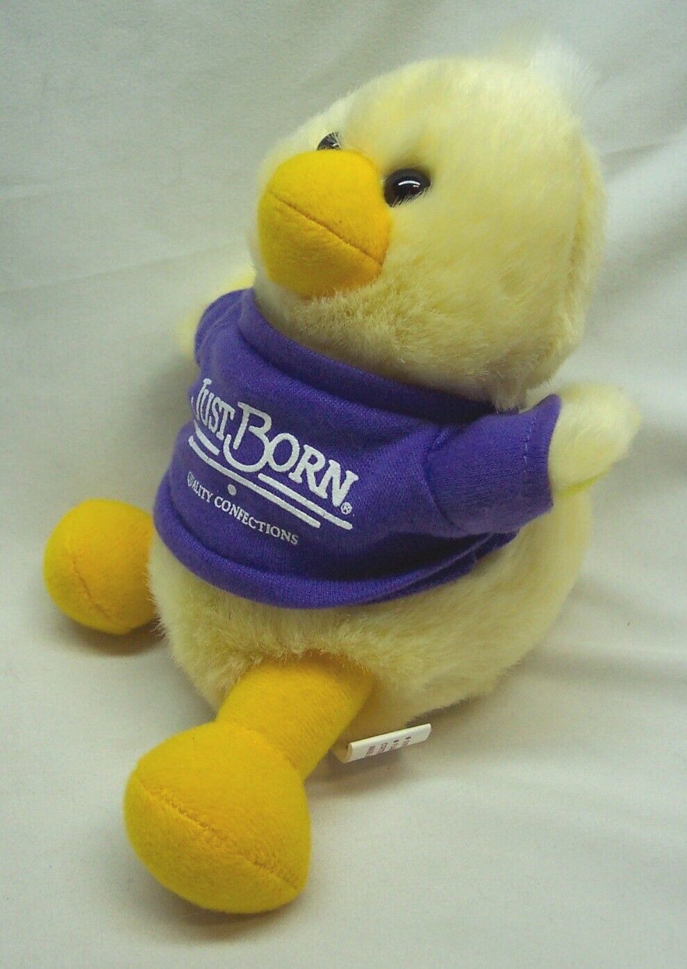 This is a VINTAGE CUTE YELLOW DUCK W/ REMOVABLE JUST BORN T-SHIRT Plush Stuffed Animal Toy. Made for Just Born. It is 6 inches tall. It is in Great Condition. There is a red loop on the top of his head so it could be hung up if you wanted. It is CLEAN! No Stains, Tears or Defects. Shirt can be removed. Combine auctions to save on shipping. Please contact me if you need to make other payment arrangements. EAG