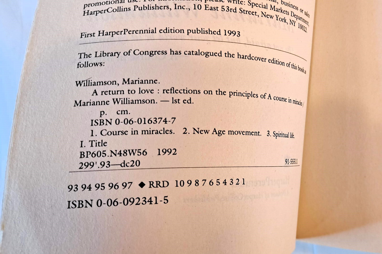 Copyright 1993. A hardcover version published 1992 by HarperCollins Publishers. Printed in U.S.A. The paperback edition is denoted as HarperPerennial edition, published 1993. This copy's print-line says this copy is from 1st printing in 1993, 1st Thus asserted. ISBN: 0-06-016374-7. LCCN: 91-55511. MSR = US $12.00.