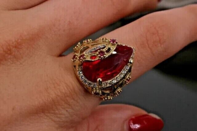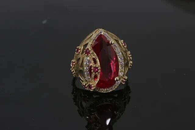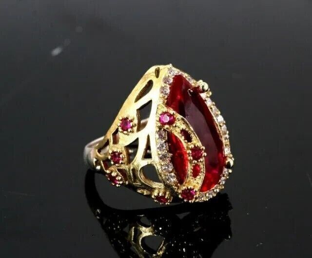 New Turkish Design 2.8Ct Pear Cut Simulated Red Ruby Ring 14K Yellow Gold Plated