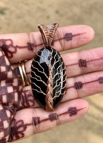 Tree Of Life Handmade Wire Wrap Pendant Copper Jewelry Healing Stone Black Onyx1