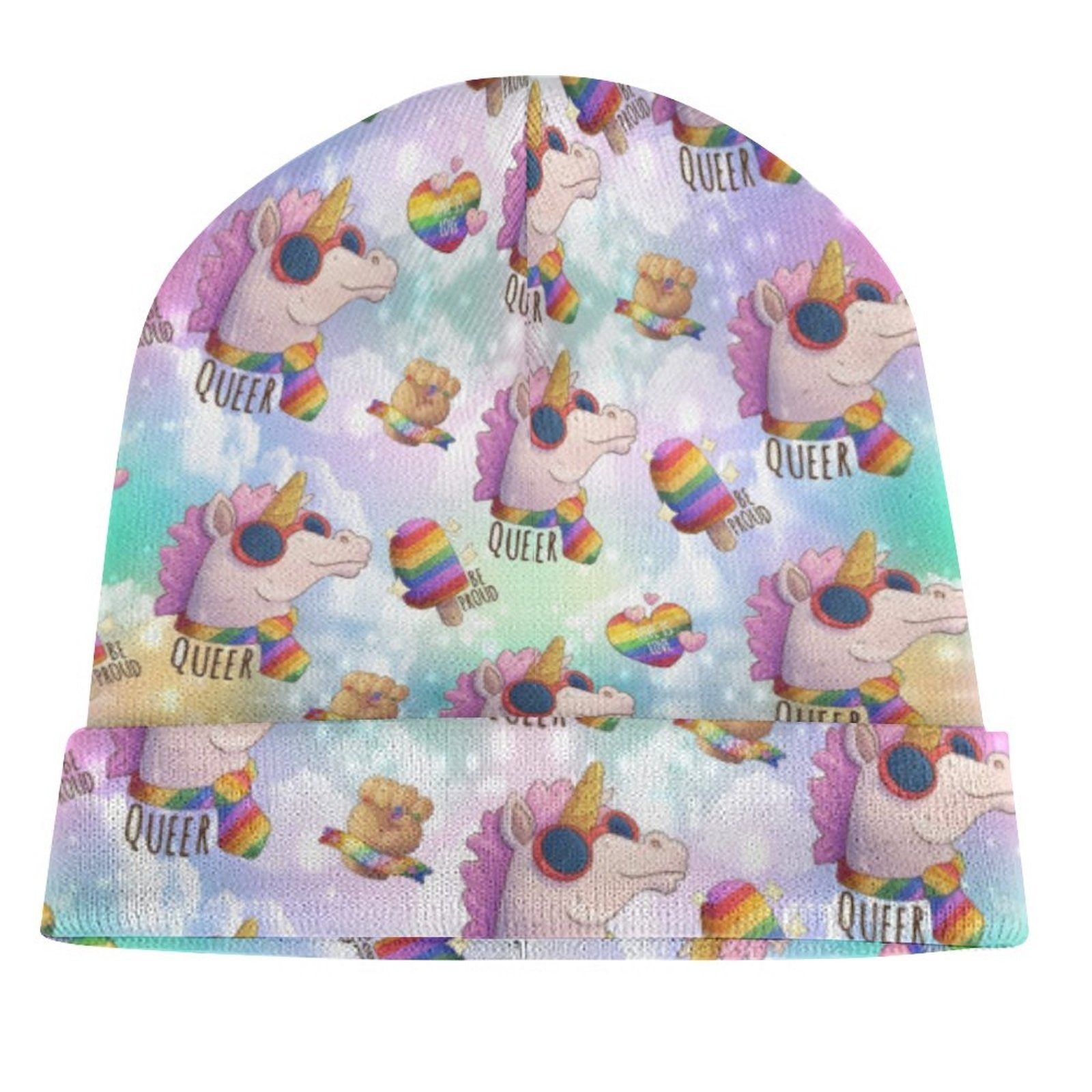 Colorful galaxy snowflakes colored tie dye unicorn beanie hats for men women warm winter knitting cap spring autumn.