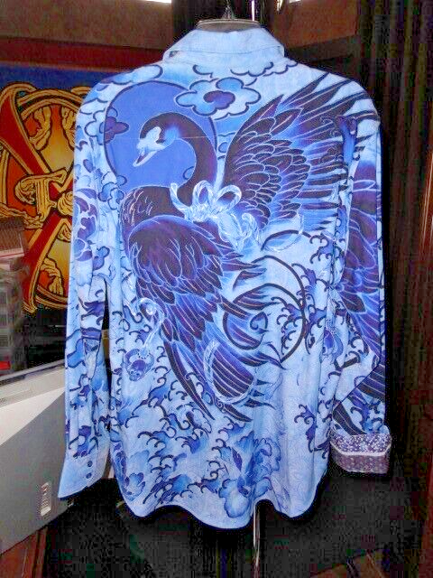 The blue color and swan pattern make it a unique piece, perfect for any occasion. With a classic fit and spread collar style, this button-front shirt is sure to impress. Whether you're a hipster, designer, or just a fan of animals, this Robert Graham shirt is a must-have.