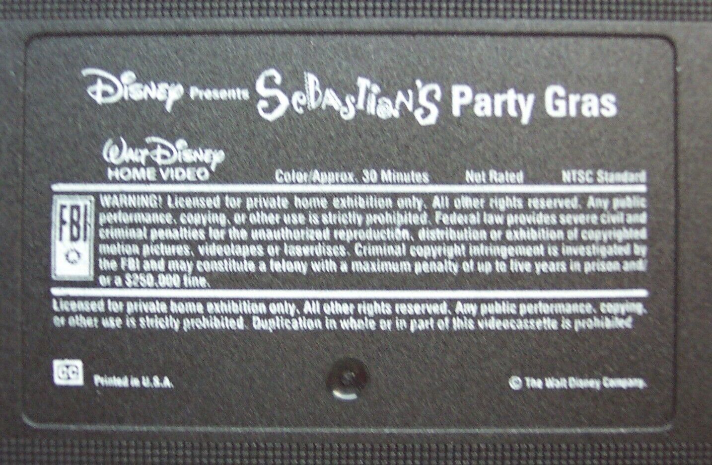 Vintage Walt Disney Sebastian's Party Gras The Little Mermaid VHS VIDEO 1992