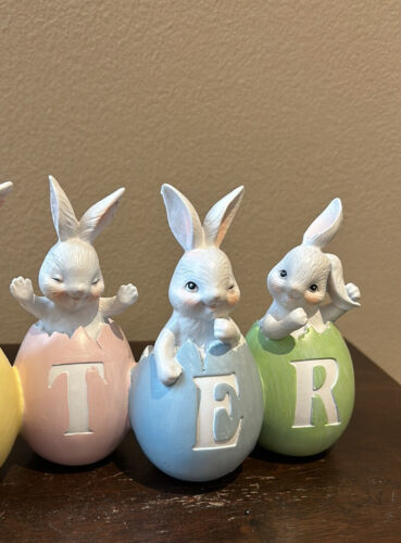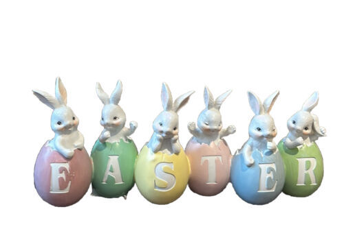 Easter Bunnies in Eggs Sign Multicolor Resin Table Spring Decor New