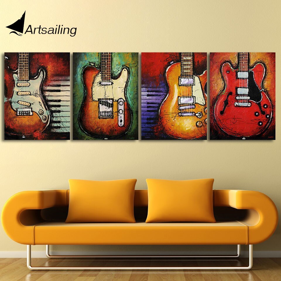 4 Panel art music Guitar wall pictures WITH and 50 similar items