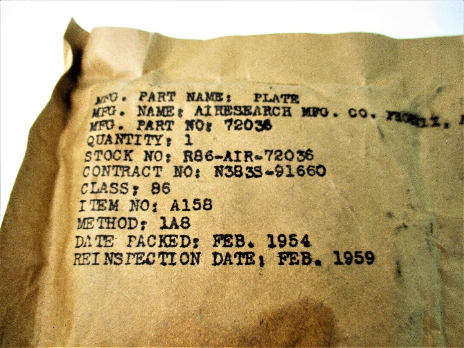 Aircraft Part Plate 72016 Airesearch Mfg. and 50 similar items