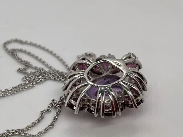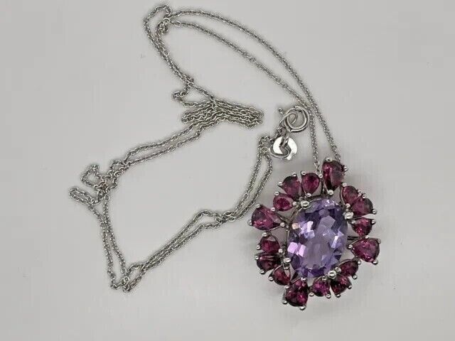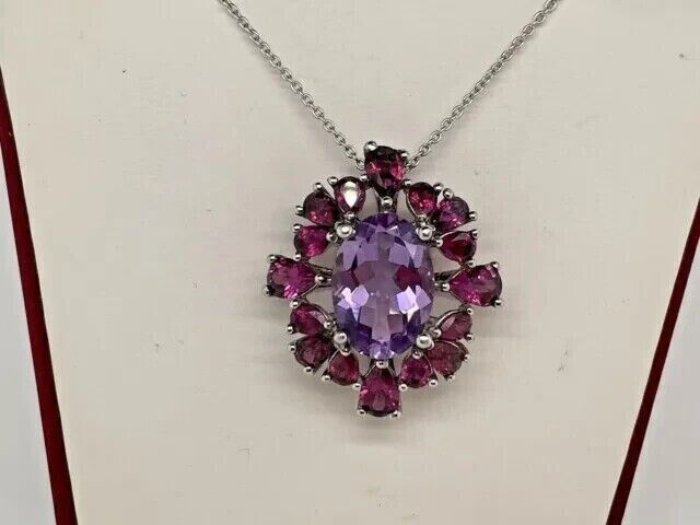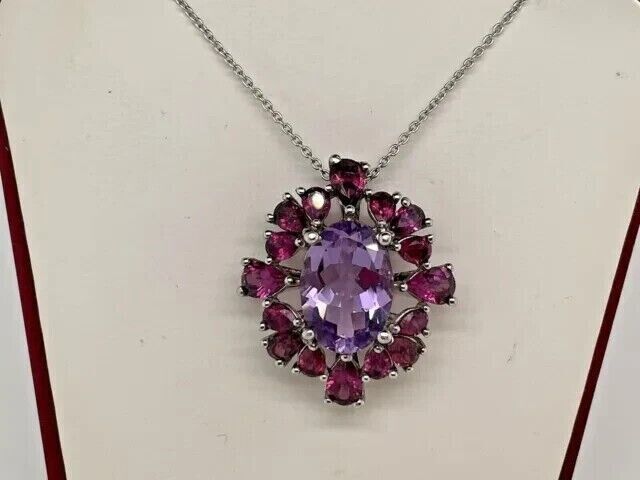 4Ct Oval Cut Lab Created Amethyst & Ruby Women's Pendent 14K White Gold Plated