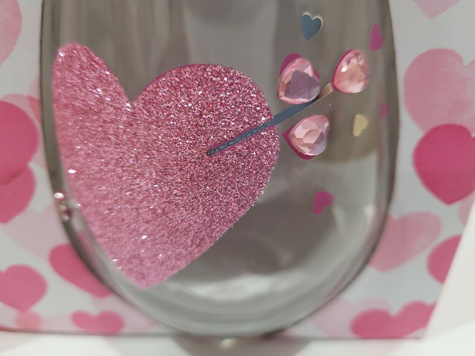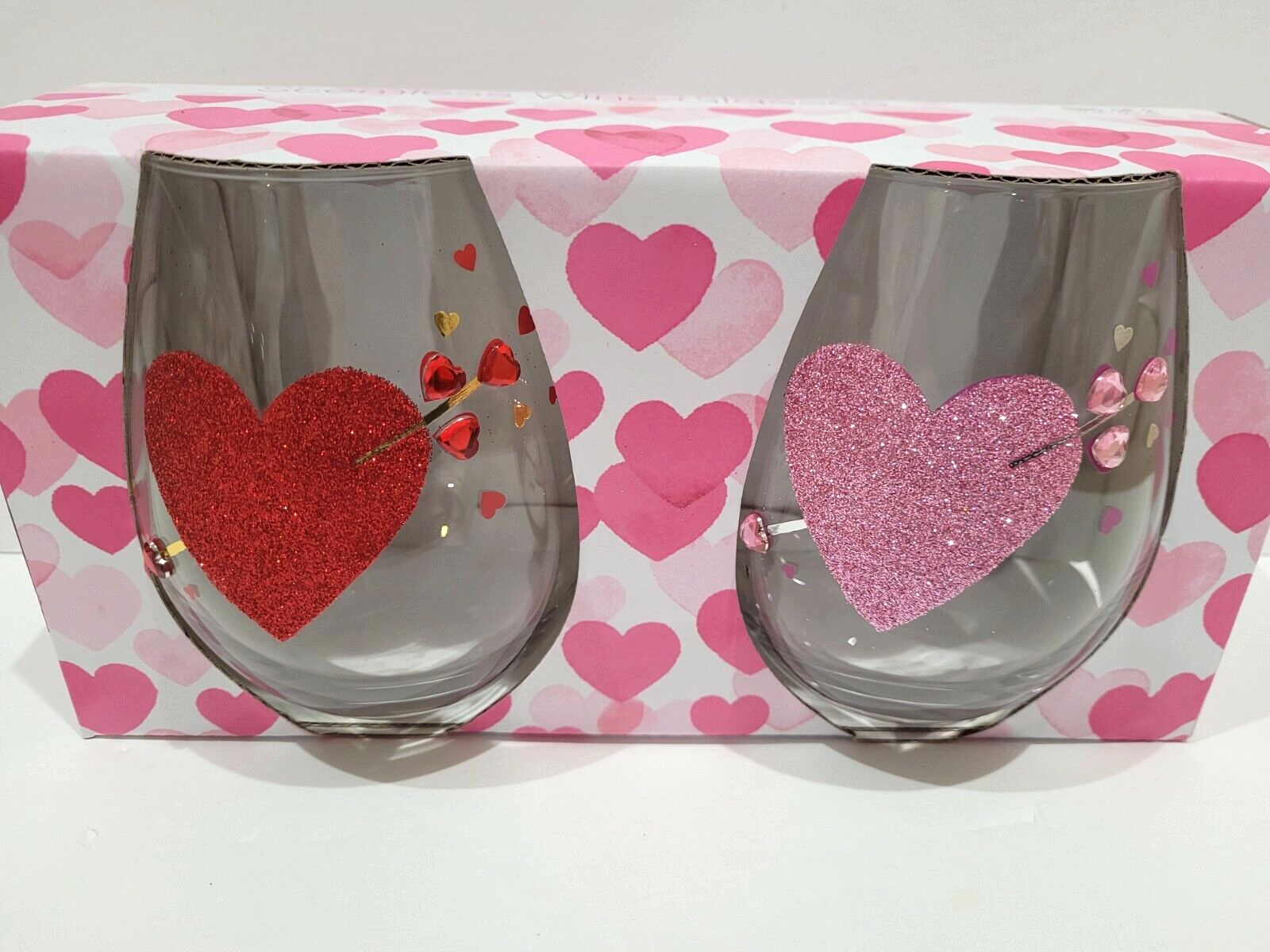 Valentine's Day Glitter Rhinestones Pink Red Hearts Stemless Wine Glasses