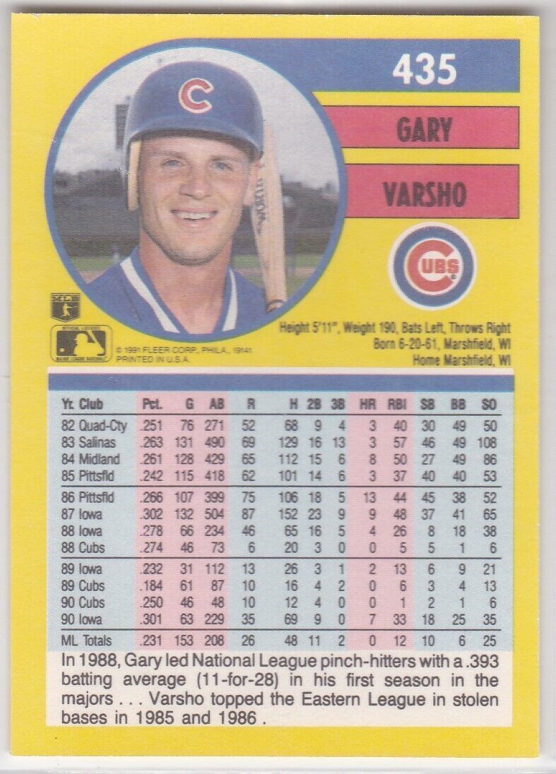 M) 1991 Fleer Baseball Trading Card - Gary Varsho #435