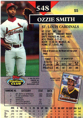1993 Topps Stadium Club Baseball Trading Card - Ozzie Smith Cardinals (M)