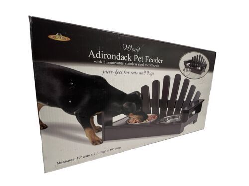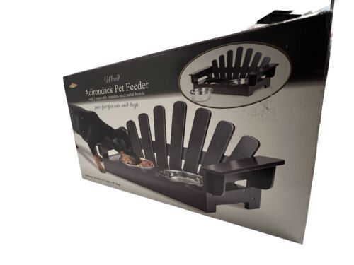 Introducing the Adirondack Pet Feeder, a stylish and functional addition to your pet's mealtime routine. This high-quality feeder features two removable stainless steel bowls, perfect for serving your furry friend's food and water. The feeder is made of durable materials, ensuring long-lasting use for your pet's needs.