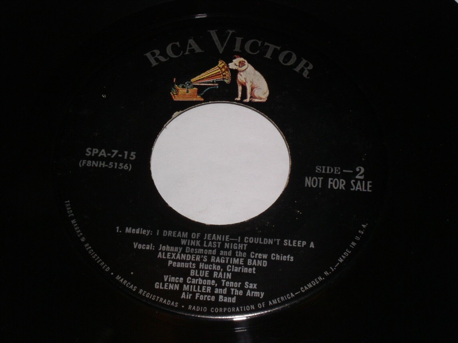 This is a vintage promotional 45 rpm Extended Play phonograph record by Glenn Miller and the Army Air Force Band. Record label: RCA SPA-7-15.