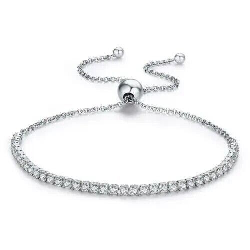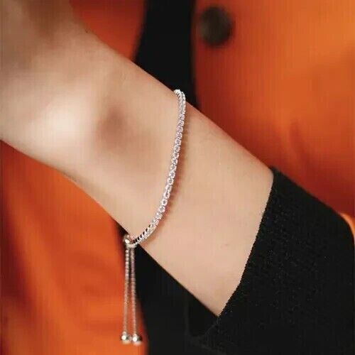 8Ct Round Cut Lab Created Diamond Bolo Tennis Bracelet 14K White Gold Plated