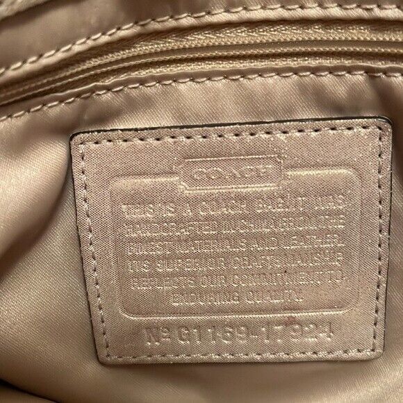 COACH Pushlock Beige Leather North South Tote Shoulder Purse 17924
