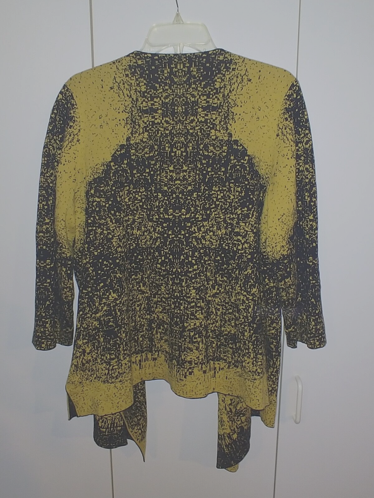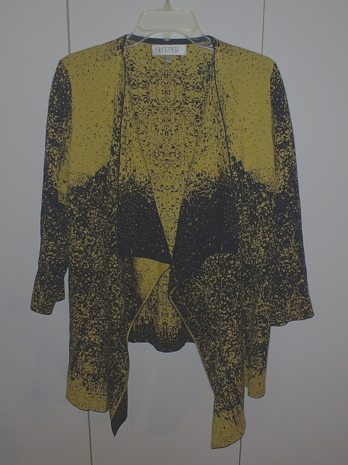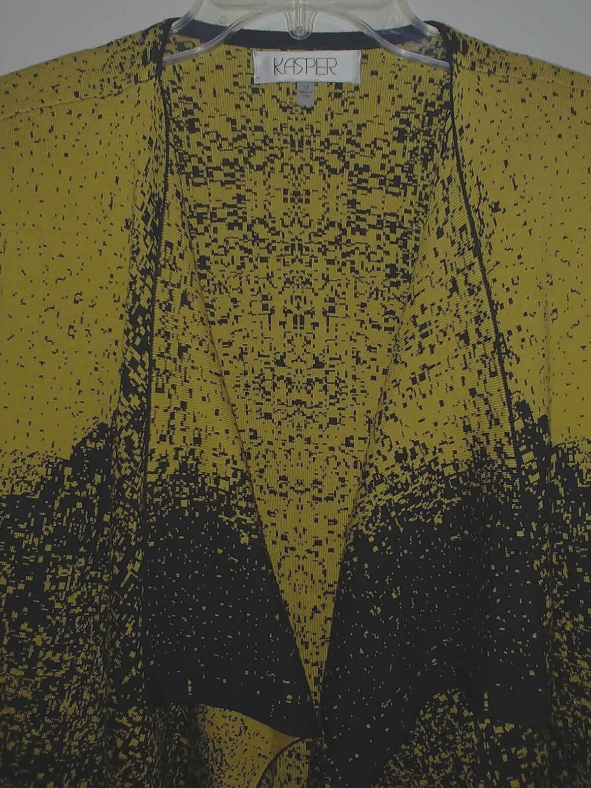 THIS IS A GREAT KASPER LADIES 3/4-SLEEVE MUSTARD/BLACK OPEN/DRAPE FRONT SWEATER IN A SIZE 1X. IT IS IN EXCELLENT, LIKE-NEW, CONDITION--WORN ONCE.