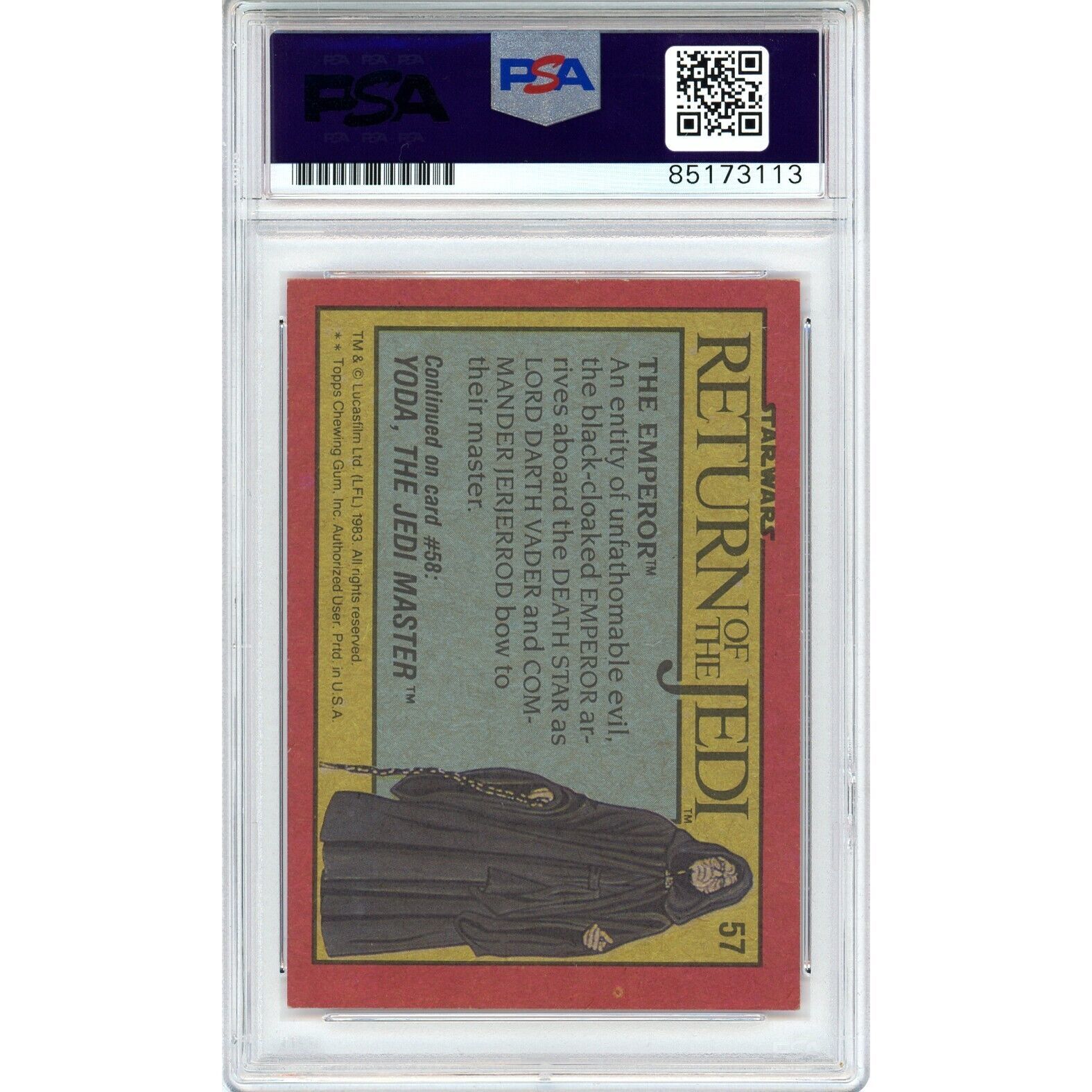 1983 Topps Star Wars Ian McDiarmid Autographed Emperor Palpatine Card #57 PSA