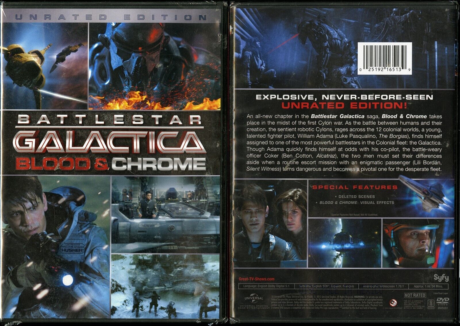BATTLESTAR GALACTICA BLOOD & CHROME DVD LUKE PASQUALINO UNIVERSAL VIDEO NEW