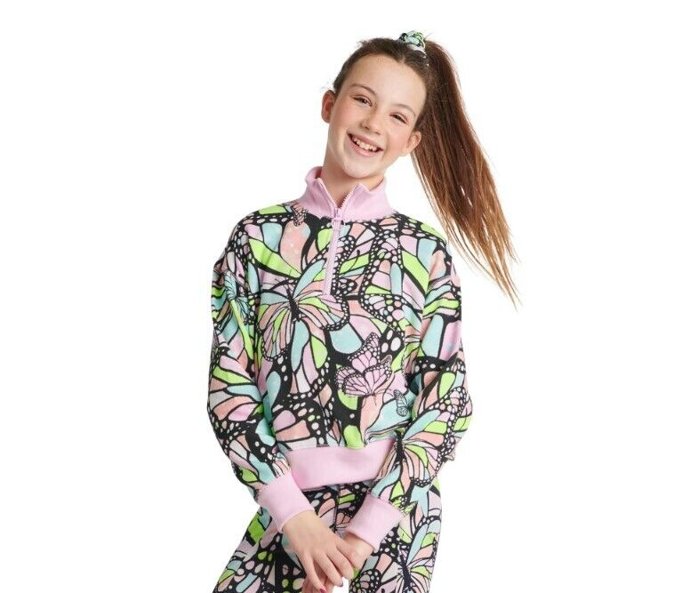Fashion meets active in the Justice Girls Collection X Long Sleeve Half Zip Pullover. This fun pullover features a half-zip neckline and an all-over print- perfect for your om-believable girl! Pair it with her favorite legging for a look as unique as she is!