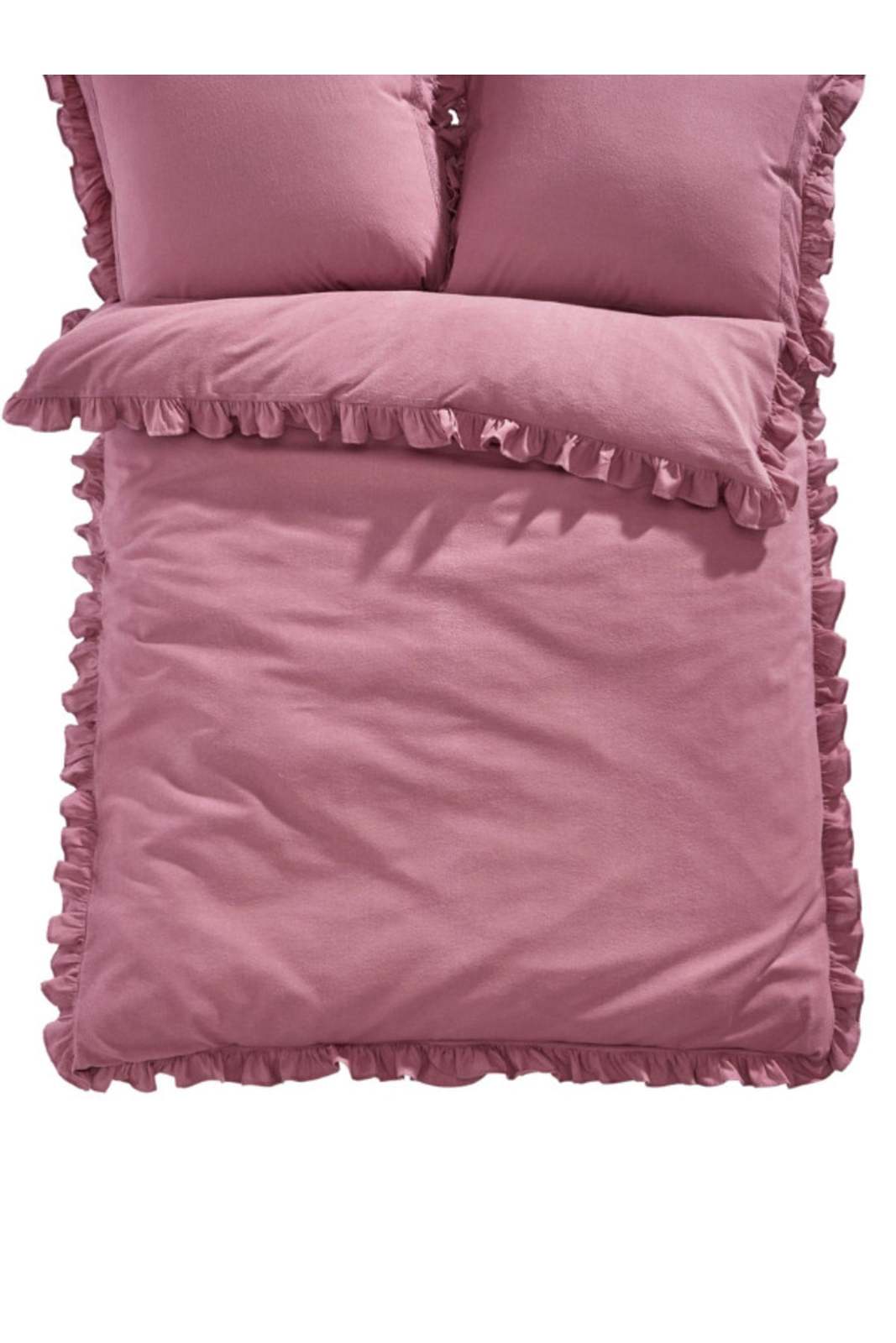 It is made of 100% cotton fabrics.1 piece, 100x150cm+frill duvet cover1 piece, 35x45+frilled pillowcase. There is no ''bed sheet'' in the product content.