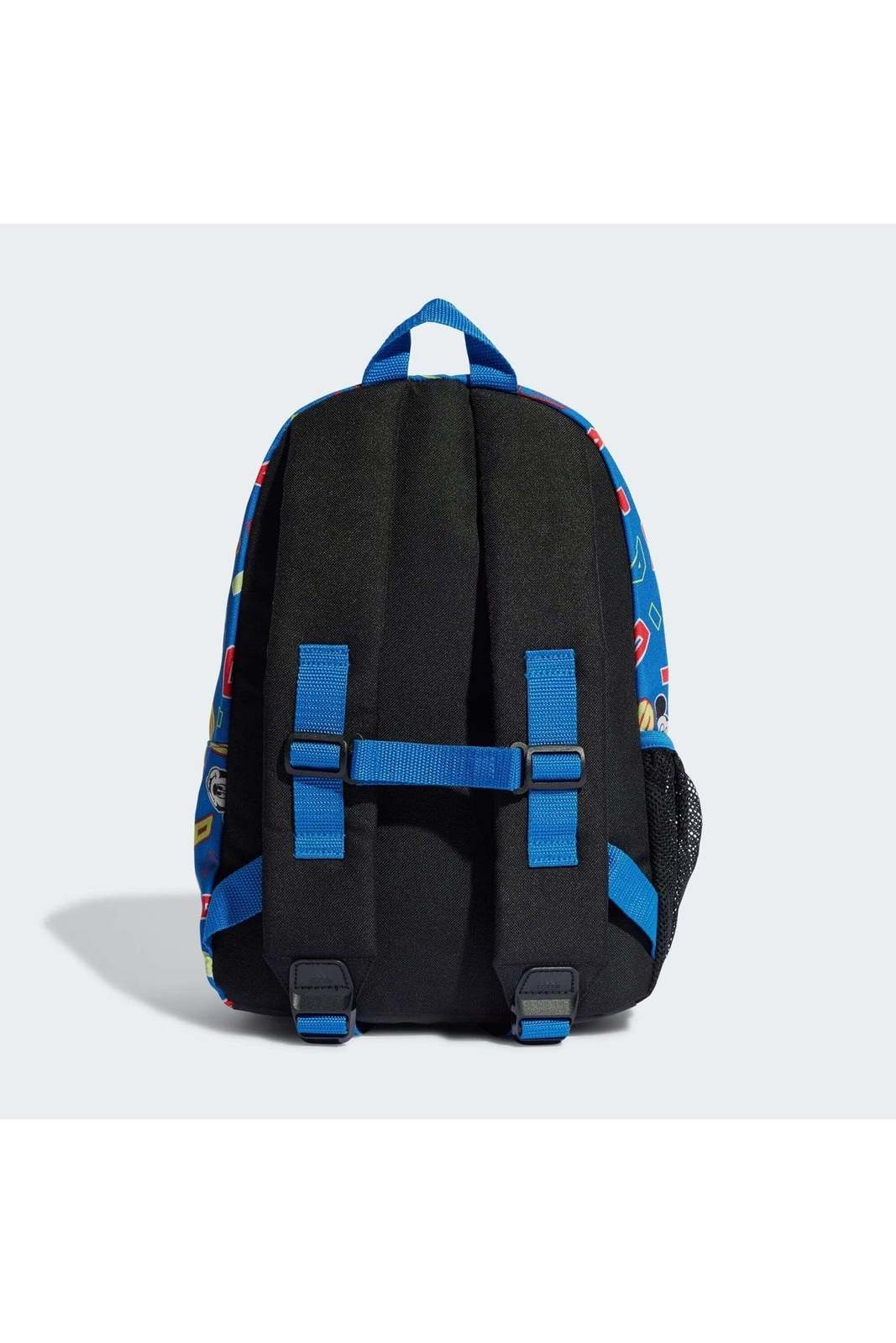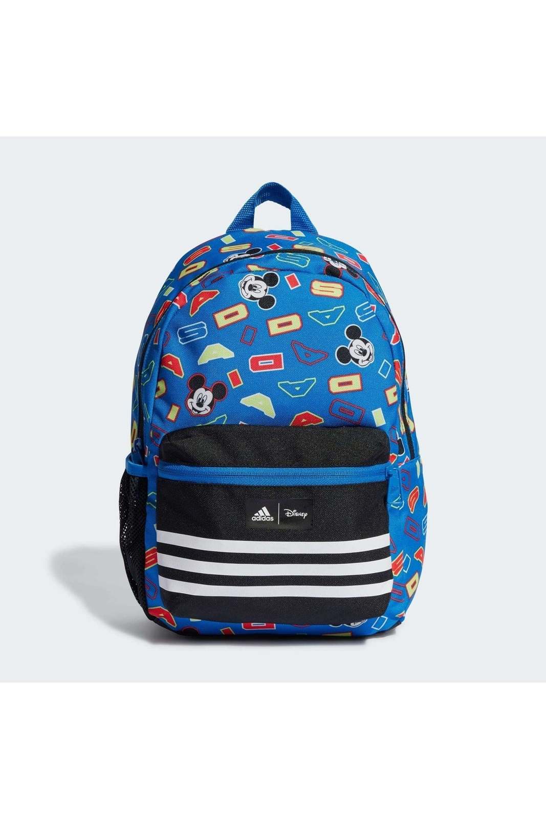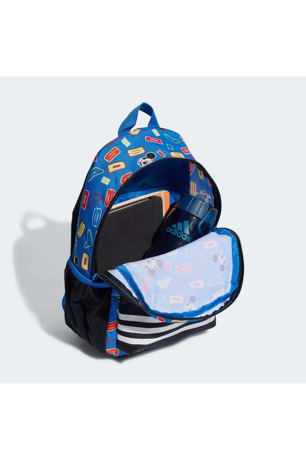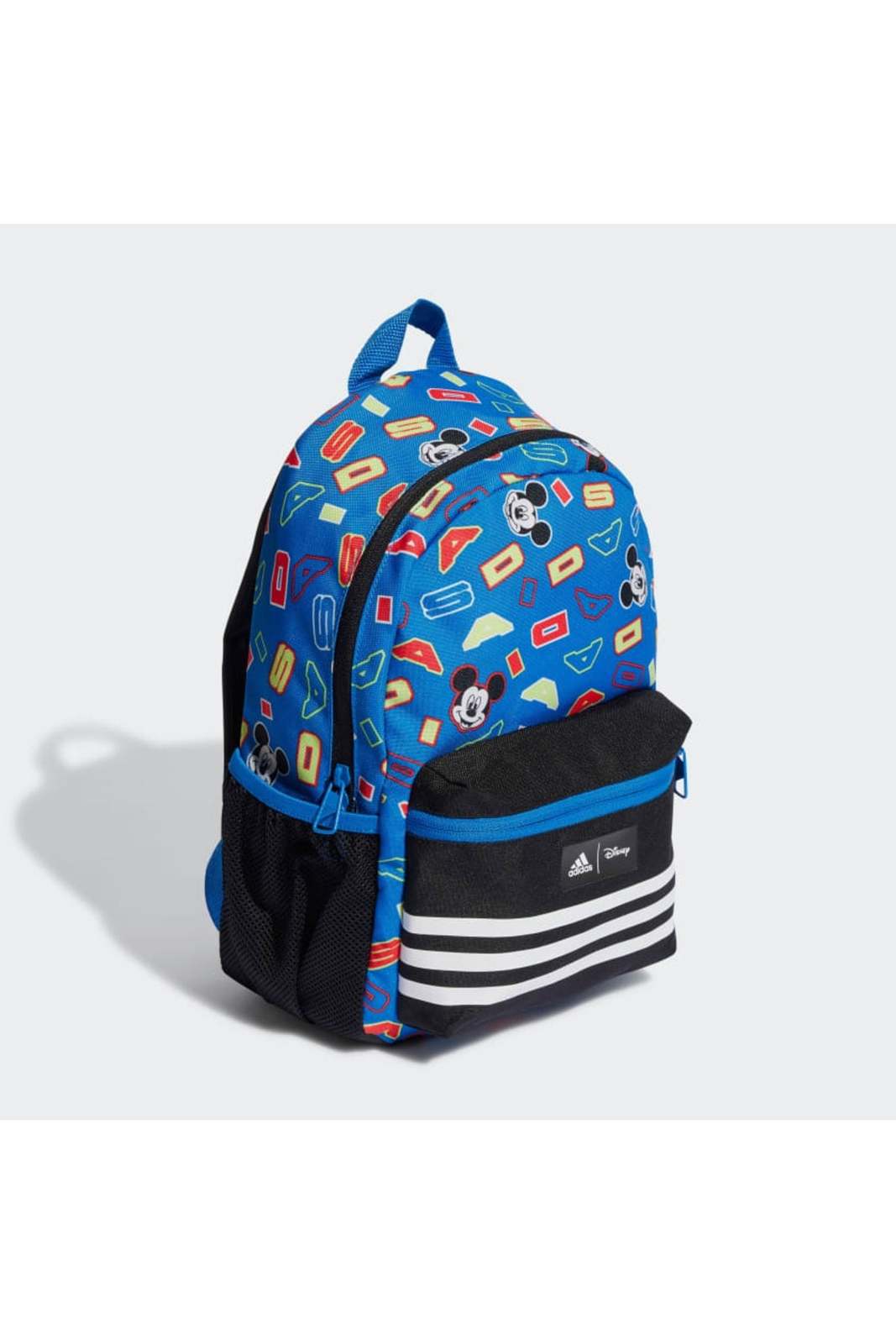 ADIDAS X DISNEY BACKPACK MADE WITH PARTICULARLY RECYCLED MATERIALS Everything becomes so much more fun when you're with your friends. Join Disney hero Mickey Mouse on your next adventure with this adidas x Disney backpack designed for kids. Standing out with its side pockets, large main compartment and adjustable chest strap, this bag has room for all your essentials. Designed with recycled materials and made from at least 40% recycled materials, this product represents just one of our solutions to end plastic waste. Care WASHING INSTRUCTIONS Use bleach Machine dry Dry clean apply Ironing Wash ADDITIONAL CARE INFORMATION Wipe with damp cloth only MAXIMUM WEIGHT TO CARRY 3 KG Disney Details Dimensions: 11 cm x 25 cm x 34 cm Volume: 12.5 l 100% recycled polyester plain woven front zippered pocket Side water bottle pockets Padded, adjustable shoulder straps Adjustable chest strap Disney Color of product: Bright Royal / Black Product code: HZ2916