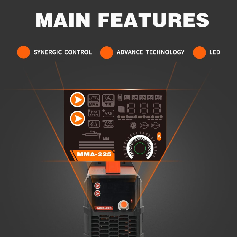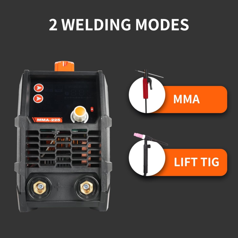 225Amp Handheld Electric Welding Machine, IGBT Digital Dispaly LCD 110V/220V Hot Start 2 in 1 Portable Welder Machine, with Cable, Electrode Holder, Welding Helmet, Brush