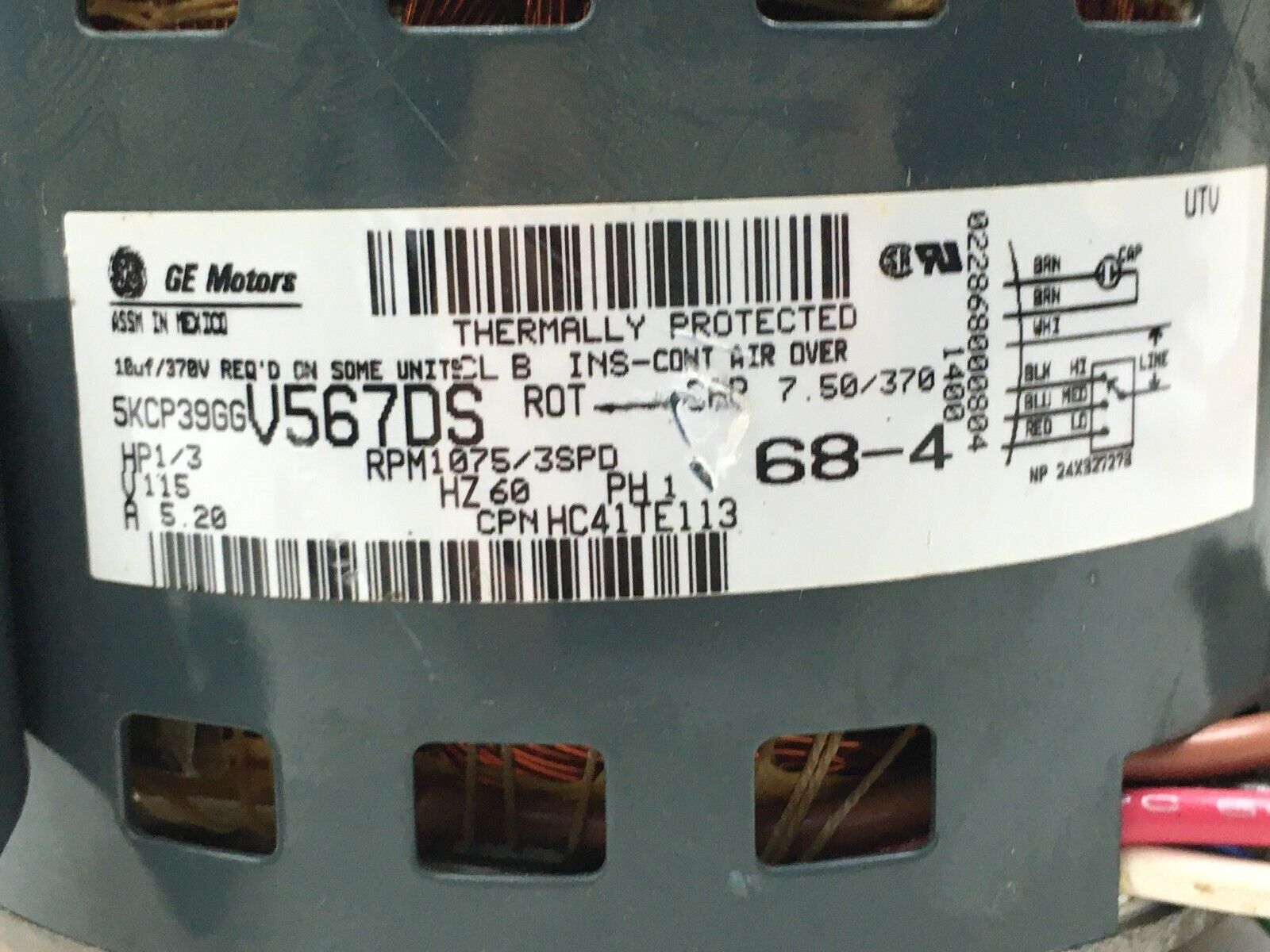 This is GE Motors 5KCP39GGV567DS Blower Motor 1/3HP 1075RPM 3SPD 115V HC41TE113 used part.