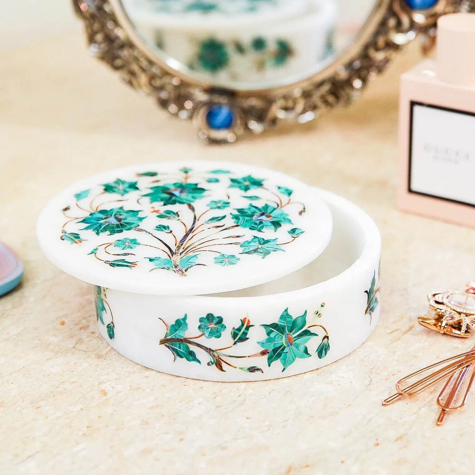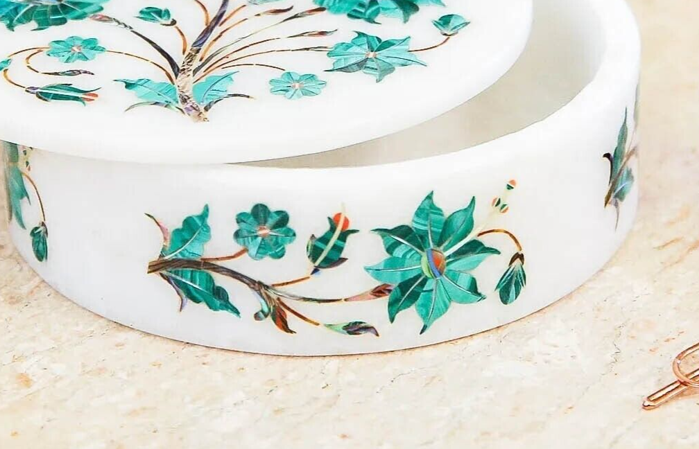 Buy White Marble Ring Storage Handmade Box Malachite Inlay Art Design Decorative