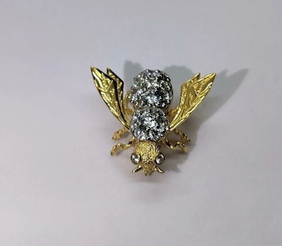 2CT Round Cut Lab-Created Diamond "Bee" Design Pin Brooch 14k Yellow Gold Plated