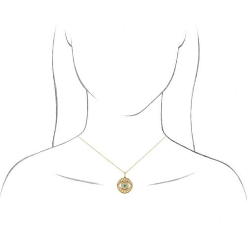 14K Yellow Gold Turquoise 1/6 CTW Diamond Evil Eye 16-18" Necklace