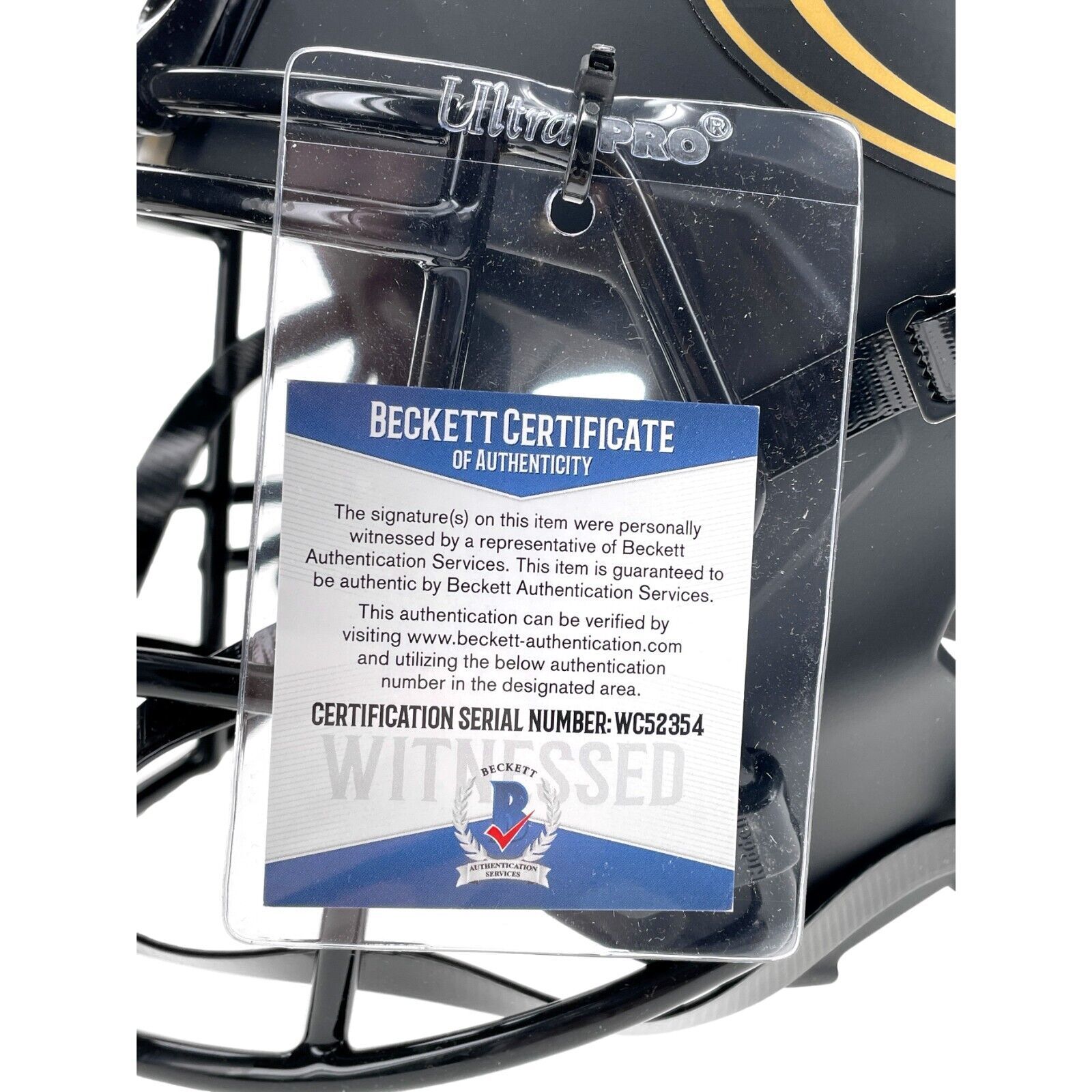 Certificate of Authenticity: The autograph on this item has been certified authentic by Beckett Authentication Services (BAS), one of the largest most reputable memorabilia companies in the industry. This piece includes the BAS tamper-proof authentication sticker directly from them, which can also be accessed anytime/anywhere via the QR code of the hologram on the physical item that connects to their online database on their website 24/7/365.