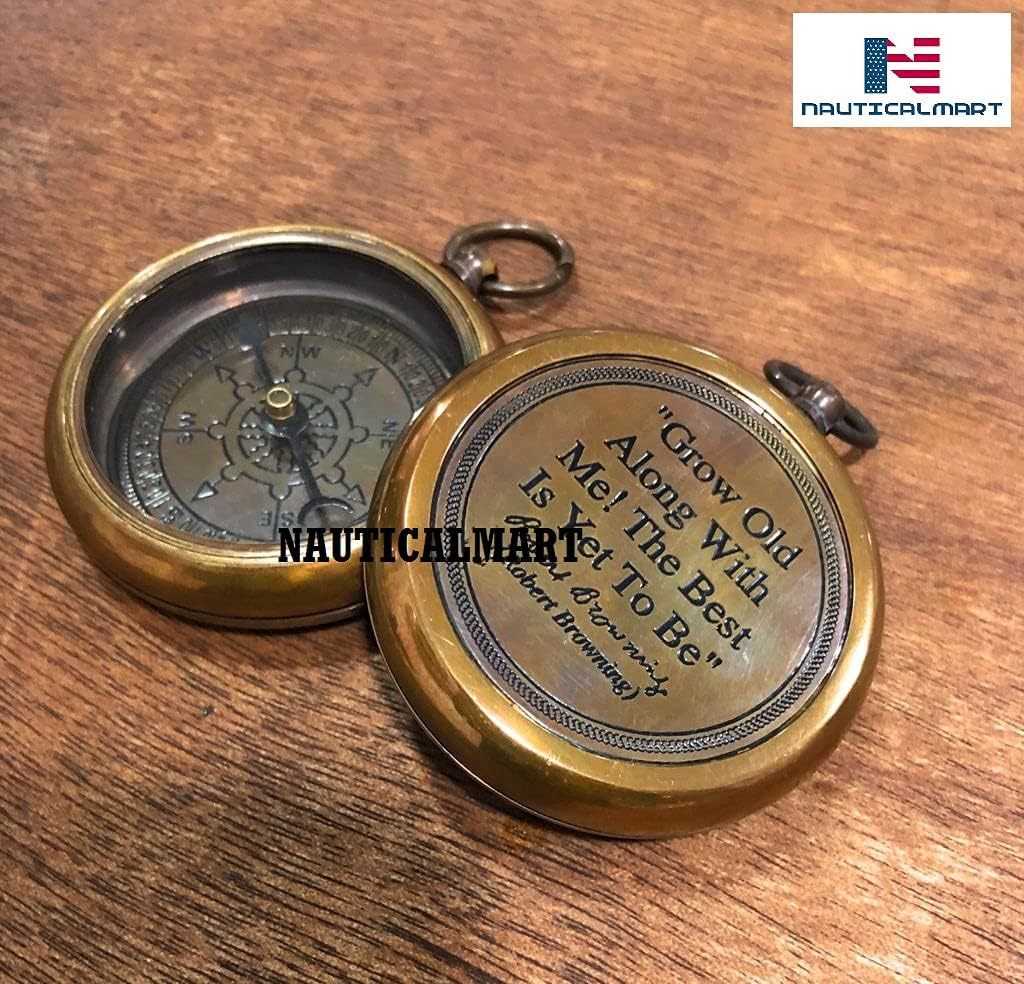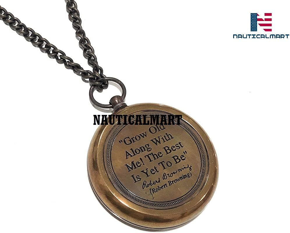 Grow Old with ME Engraved Brass Compass ON Chain Directional Magnetic Compass